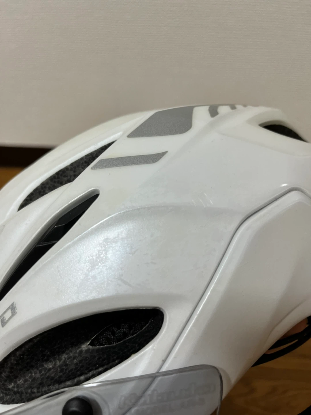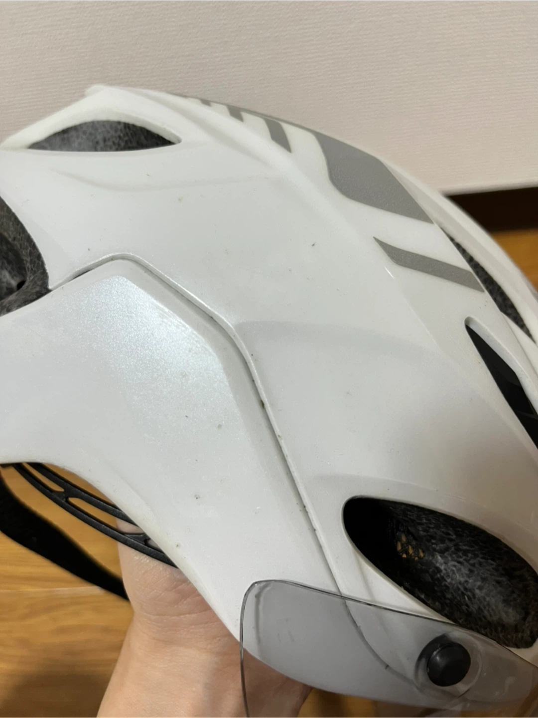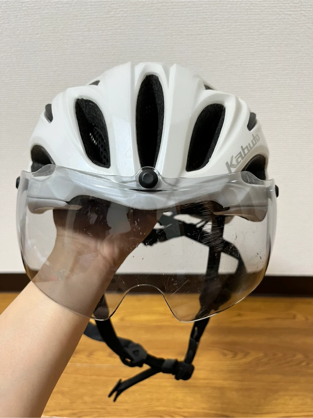 OGK Kabuto Vitt S/M ホワイト サイズ : S/M 55-58cm 色 : ホワイト 3年前に購入し、サイクリングをしていた頃に使っていました。1年間サイクリングを休んでいたので、クローゼットにしまっておきました。 使用はあまりしていませんので状態は良い方だと思います。 シェルとアイシールドに傷や汚れがあります。状態は画像でご確認ください。 目立たない擦れなどはあります。また、シールにシワが出来ていましたのでご確認ください。 付属品はありません。 まだきれいな状態と個人的には思いますが素人検品になります。 見落としなどご理解いただけますようお願いします。 中古品にご理解のある方のみ、ご検討、ご購入下さい。 自宅保管のお品ですのでご理解下さる方。 ご質問がある場合は、遠慮なくコメントしてください。 宜しくお願い致します。