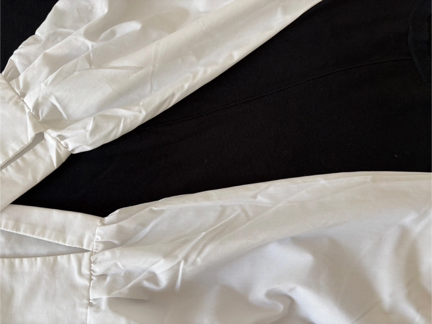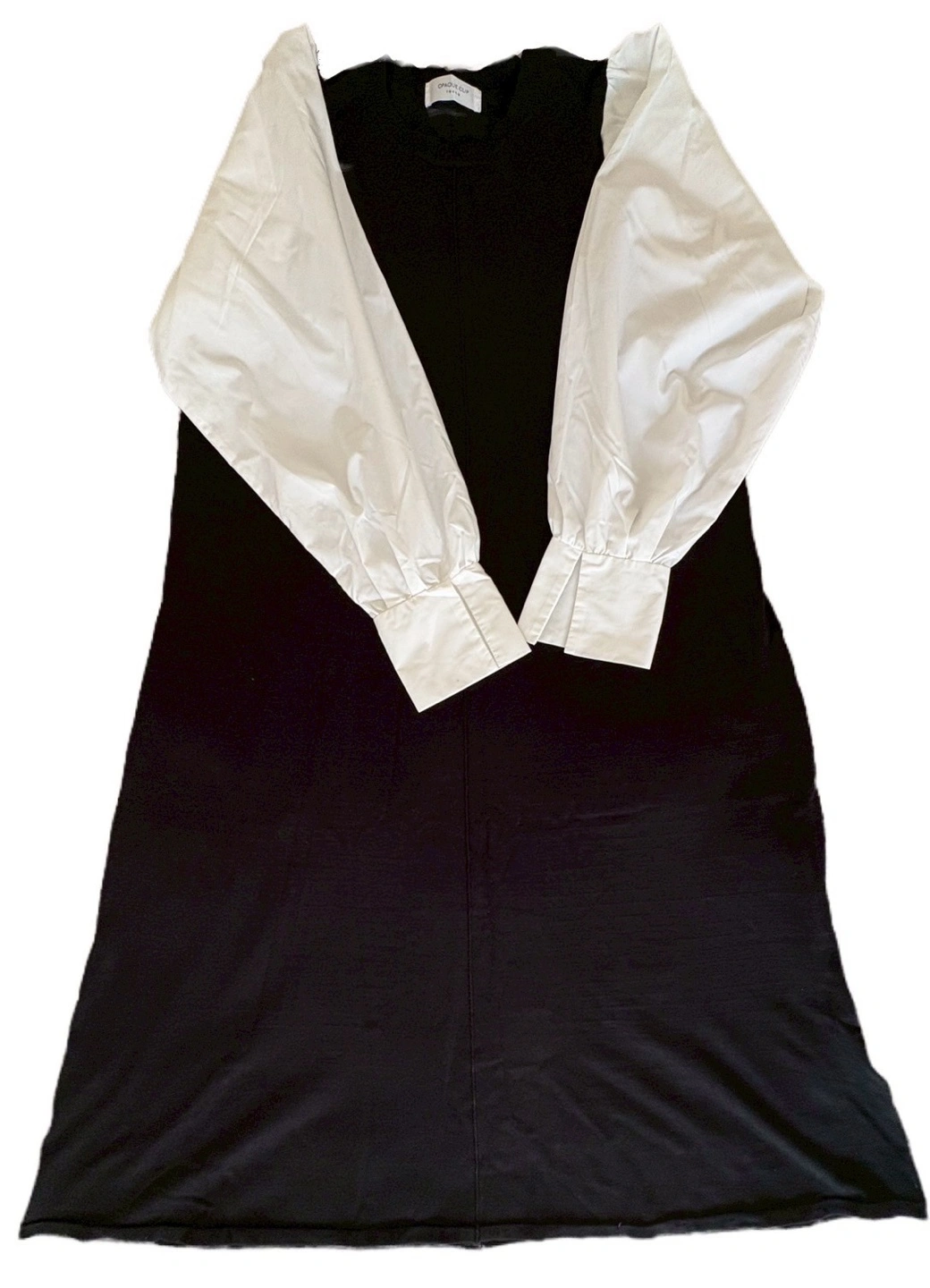 OPAQUE.CLIP (オペークドットクリップ) 白 黒 白黒 ワンピース フハクスリーブニットワンピース【洗える】 一枚でスタリング完成!袖をシャツ素材で切り替えたドッキングニットワンピース 【デザイン】 ・ボディはニット素材で裾にかけて自然なフレア感を出し、袖部分はシャツ素材で切替えたドッキングワンピース。 ・肩幅を狭く設定し、袖には細かなギャザーデザインを入れることで、ほどよいボリューム感がありながら、華奢見えするバランスにしています。 ・フロントに入ったピンタックデザインがポイントです。 ・一枚でスタイリングが決まり、華やかな印象ながらも、ニット素材なので楽な着心地も魅力。 【素材】 ・ニット部分は、レーヨンとポリエステルを混紡した糸を使用しており、程よい光沢感と滑らかな肌触りが特徴。 ・クリーンな表情のハイゲージニットで、軽さもありながら、しっかりした素材感に仕上げています。 ・袖部分は、コットン(綿)/ポリエステル混のハリ感のある素材を使用しています。 ・ハンドウオッシャブルでご自宅でのお洗濯も可能。 【仕様】 ・ポケットなし ・裏地なし ※こちらの商品はやや透け感があるため、インナーの着用をおすすめします。 ※照明の関係により、実際よりも色味が違って見える場合があります。また、パソコン・スマートフォンなどの環境により、若干製品と画像のカラーが異なる場合もございます。 サイズ表記/着丈/B/袖丈/肩幅/W/H 38(M)/112cm/98cm/59cm/30cm/106cm/120cm 637-52011 「目立った汚れなし」とさせていただいておりますが、中古品のため、あくまで素人出品・素人検品・人の手に渡ったものであることをご理解の上、ご購入下さい。 元々中古で買ったのですが、表面は特に大きな汚れはないのですが、下の方の裏が少し汚れているのと、糸を通したような跡があります。 また、汚れの見落としなどある場合もございますので予めご了承下さい。ご自身で画像を見て判断頂き、神経質な方はご購入をお控え下さい。 ⭕️即購入OK ❌お値下げ交渉ご対応出来かねます ※お値下げ待ちのいいねや購入意思が無いいいねはご遠慮下さい。 また、商品は予告なく公開停止にする場合がございます、予めご了承下さい。
