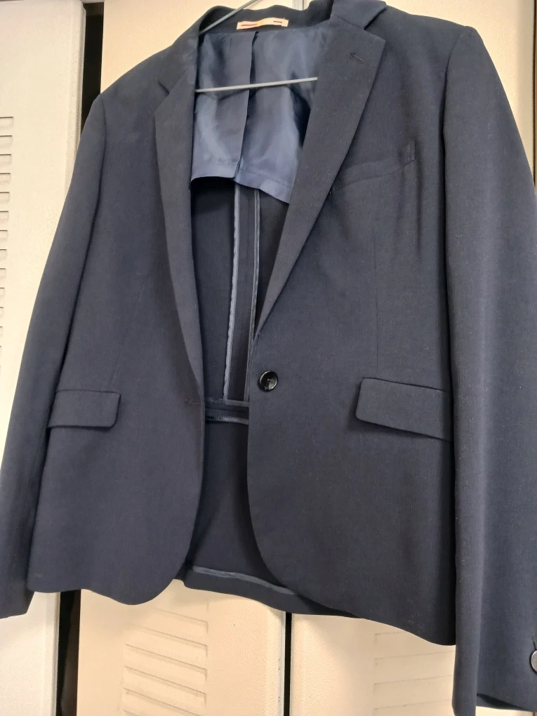 数年前、リクルートしていた頃の為、汚れ有りですが、ウォシャブルなので家で洗えます!ネイビーのジャケットとスカート共布のセットです。 ・色:ネイビー ・状態:使用感あり 中古品であることをご了承ください。