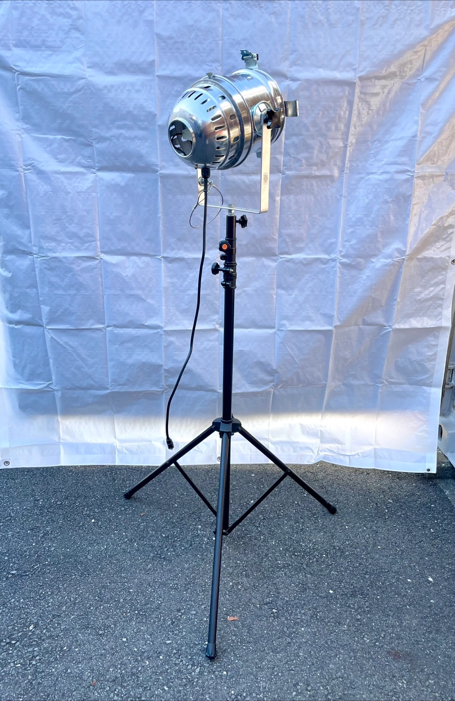 各種発表会のクオリティアップに! 司会者を照らすだけでもぐっと質があがります! 操作方法は簡単です。コンセントに刺す、抜く、だけ! スイッチのついたコンセントなら操作もしやすいです。 ▷使い方は コンセントに挿せば 点灯 コンセントから抜けば 消灯 たったそれだけ。 【カンタン照明演出】 各種発表会で貸しホールや会議室などを使う際、照明が蛍光灯だけだととてもチープに見えてしまいます。司会者スポットで光を当てる簡単な照明演出があるだけでクオリティアップします。 舞台照明用のライトですが、簡単に扱えます。スタンドは高さ調整のネジが機能しないので、おまけでお付けします。 また、調光ユニットなどを買えばフェードイン、フェードアウト、などの演出もできます。 ◆PAR64 ◆シルバー ◆ヨークメカ仕様 ◆ディスクブレーキ付き ◆口金 GX-16D ◆電球 PAR64 1000W球まで使用可能 ◆寸法 26.5×27.5×42.0 ◆ヨーロッパ最高水準のGS規格に準拠 ◆メーカー STAGE EVOLUTION ◆付属品 落下防止ケーブル メッシュグリルガード バンドア カラーフィルター枠 ◆お渡し 東急田園都市線 溝の口駅周辺にて ※電球は持ち運びの振動で切れる可能性があります。お待ち帰りされる際は十分ご注意ください。