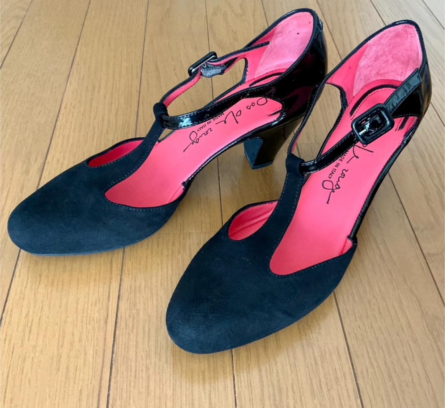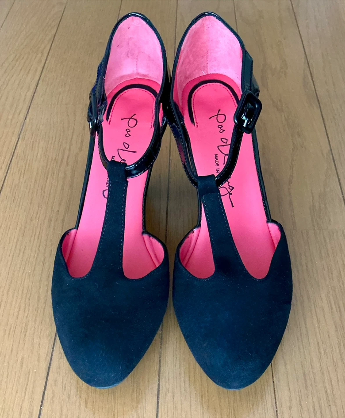 イタリア製Pas de Rougeパ・ド・ルージュ サイズ:39(日本サイズ24.5〜25) ヒール:8㎝ ✨【美品】室内試し履きのみ。✨ ヒール部が太いので凄い安定感あり感覚はパンプス履いてるようです。 黒色のスエードのアッパーと、 🩷鮮やかなピンク色のインソール Tストラップとアンクルストラップは黒のエナメル Pas de Rougeは伝統的な「手袋縫い」という製法と超軽量素材の組み合わせで、一日中履いていても疲れにくい「魔法の靴」と称されています。 お取引場所:駅改札or中央区内、お互いの都合の良い場所も可能。 日時応相談。 ご不明点があればお気軽にお尋ねください。