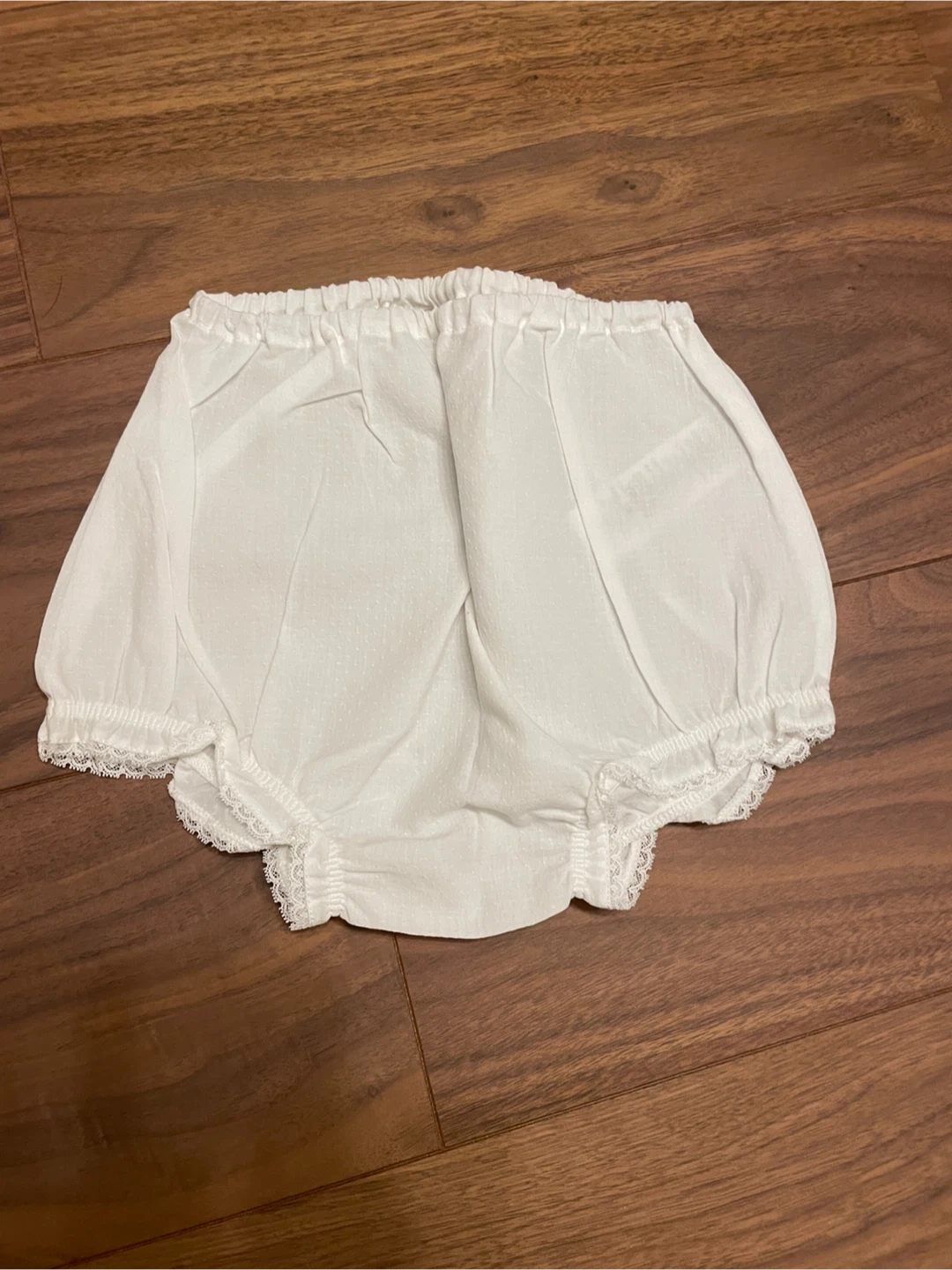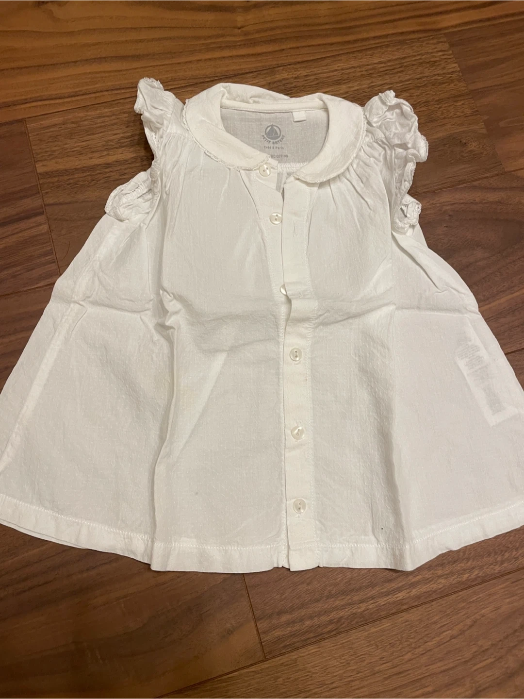 Petit Bateauのワンピースとブルマのセットです。 ・色:白地に緑の花柄 ・状態:使用感少なめ 小さな女の子が着るとお姫様のように可愛くなるデザインで、さすがプチバトーです。 12mのサイズですが、チュッニックとしても着られるため、我が子は2歳台でもきていました。お出かけ用に大切に着ていた為使用感少なく、綺麗な状態です。ブルマは未使用です。 ご不明点があればお気軽にお尋ねください。