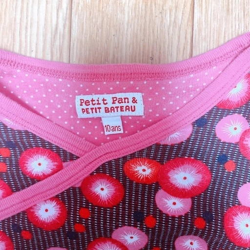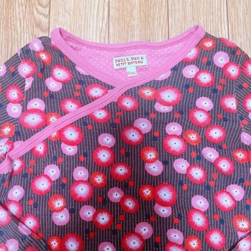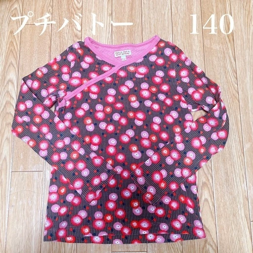 レアなコラボ商品です。 プチバトーとプチ・パンのコラボ。 首元はラップ風ネックになっていて、可愛らしい花柄やデザインです。 部屋着、インナー、Tシャツとして着ていただけます。派手な柄がとても可愛いです。 【ブランド】プチバトー 【サイズ】10ans (140cm程度) 【カラー】マルチカラー(ピンク、ネイビー、レッドなど) 【柄】花柄 【商品の状態】着用回数 数回 小田急線 狛江周辺、登戸駅〜下北沢駅で、土日祝日に受け渡し可能です。 平日は夕方、ご相談ください。 ドタキャンしない方、中古品にご理解のある方のみお問い合わせください。 よろしくお願いいたします。