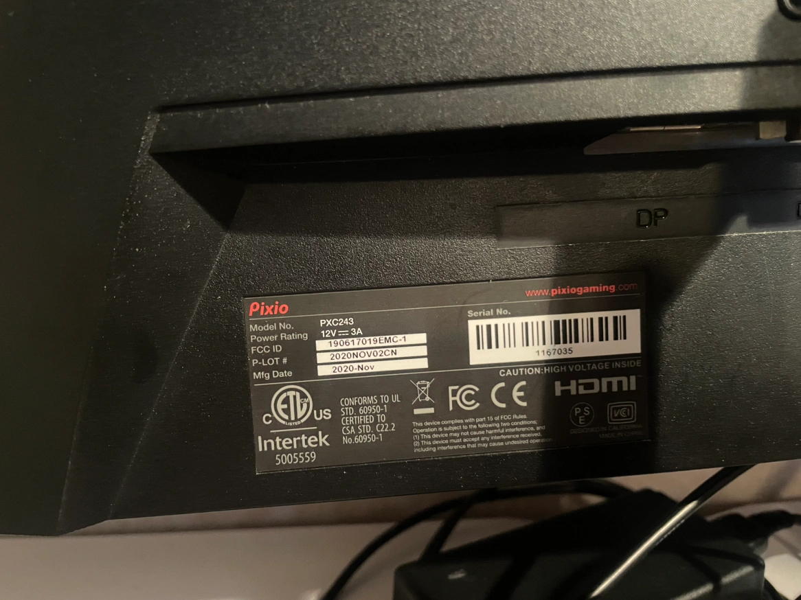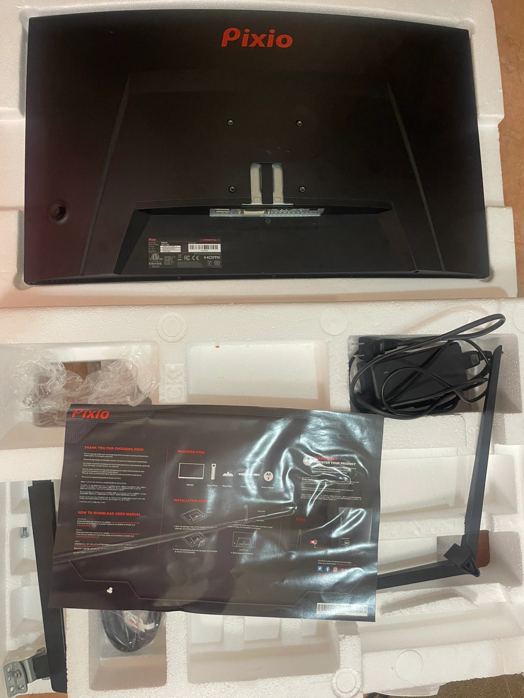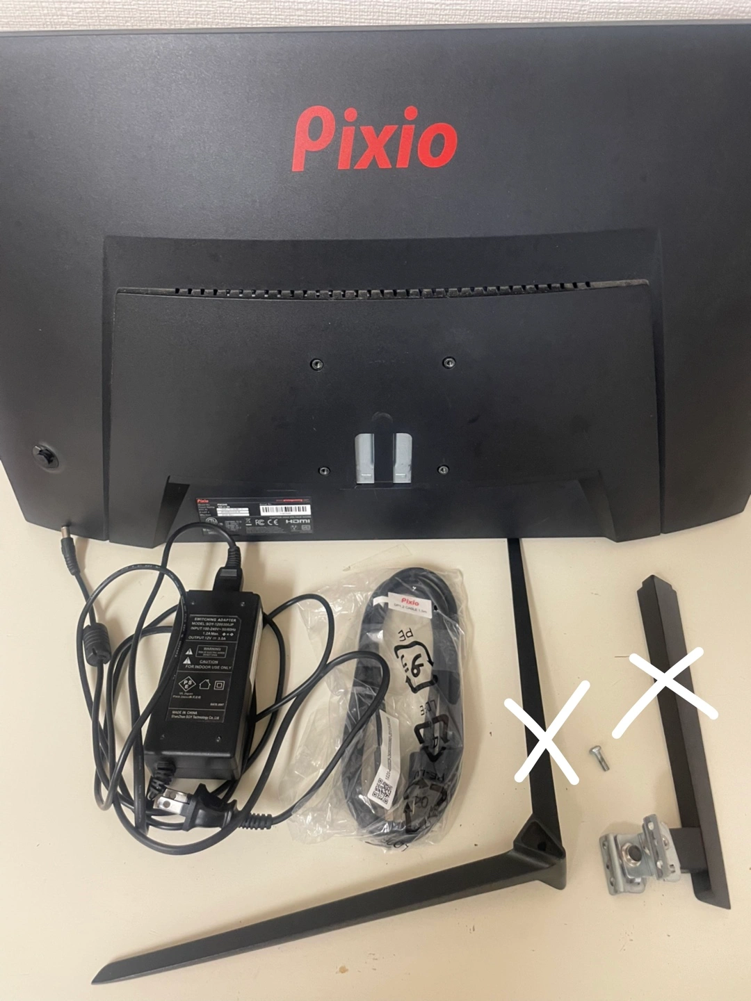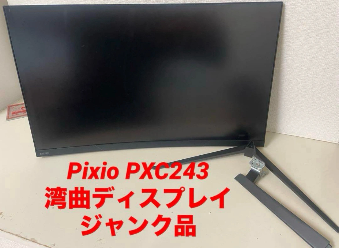 Pixio PXC243 湾曲ディスプレイモニター 24インチVAで144Hzの湾曲型ゲーミングモニター ジャンク品 画像に載っているものがすべてとなります。 ×の記載の台座などはつきません。 画面はつきますが液晶モニターにひびが入り、 左側が見えない状態ですので、画像をご確認の上、 修理する方や部品取りにおすすめします。ジャンク品扱いとしています。 - ブランド: Pixio - 付属品: 電源ケーブル、箱、梱包材、説明書 - ディスプレイタイプ: 湾曲型 台座 スタンドは画像通り別のタイプですので×をつけています。 あくまで本体とケーブル、ケースや説明書のみとなりますので、スタンドは別途ご用意ください。 Pixio PXC243 ディスプレイ モニター [24 型 144hz FHD 1920×1080 FreeSync G-SYNC Compatible対応] ゲーミング モニター ベゼル ブランド:Pixio