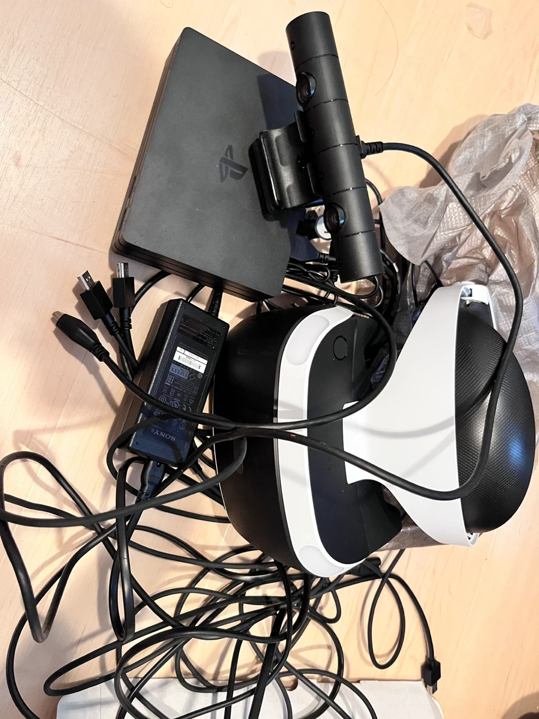 PlayStation4 pro 2tb+VRセット 【PS4 pro情報】 機器自体には故障はありません。修理歴なし。 ですがコントローラーが壊れてしまい非純正品のコントローラーに買い替えました。 今でも問題なくプレイできています。初期化済みです。 【VR情報】 機器自体には故障はありません。修理歴なし。 5回くらいしか使ったことありません。内箱付き・動作良好。 【セット内容(付属品)】 ・PS4 Pro 本体 ブラック2TB ・ワイヤレスコントローラー1個(非純正品) ・縦置きスタンド冷却ファン付き(非純正品) ・電源ケーブル ・HDMIケーブル ・VRセット:ケーブル、取扱説明書、ヘッドフォン、接続アダプタなど一式 ※写真に写っているものがすべてです。 【状態】 多少の使用感はありますが、比較的に良い状態です。 出品にあたり、拭き掃除と消毒はいたします。 あくまで素人保管の中古品ので、予めご理解の上で、ご購入ください。 他サイトでも出品中です。他で売れた場合、急に削除しますので、ご了承ください。 ご覧いただきありがとうございました。