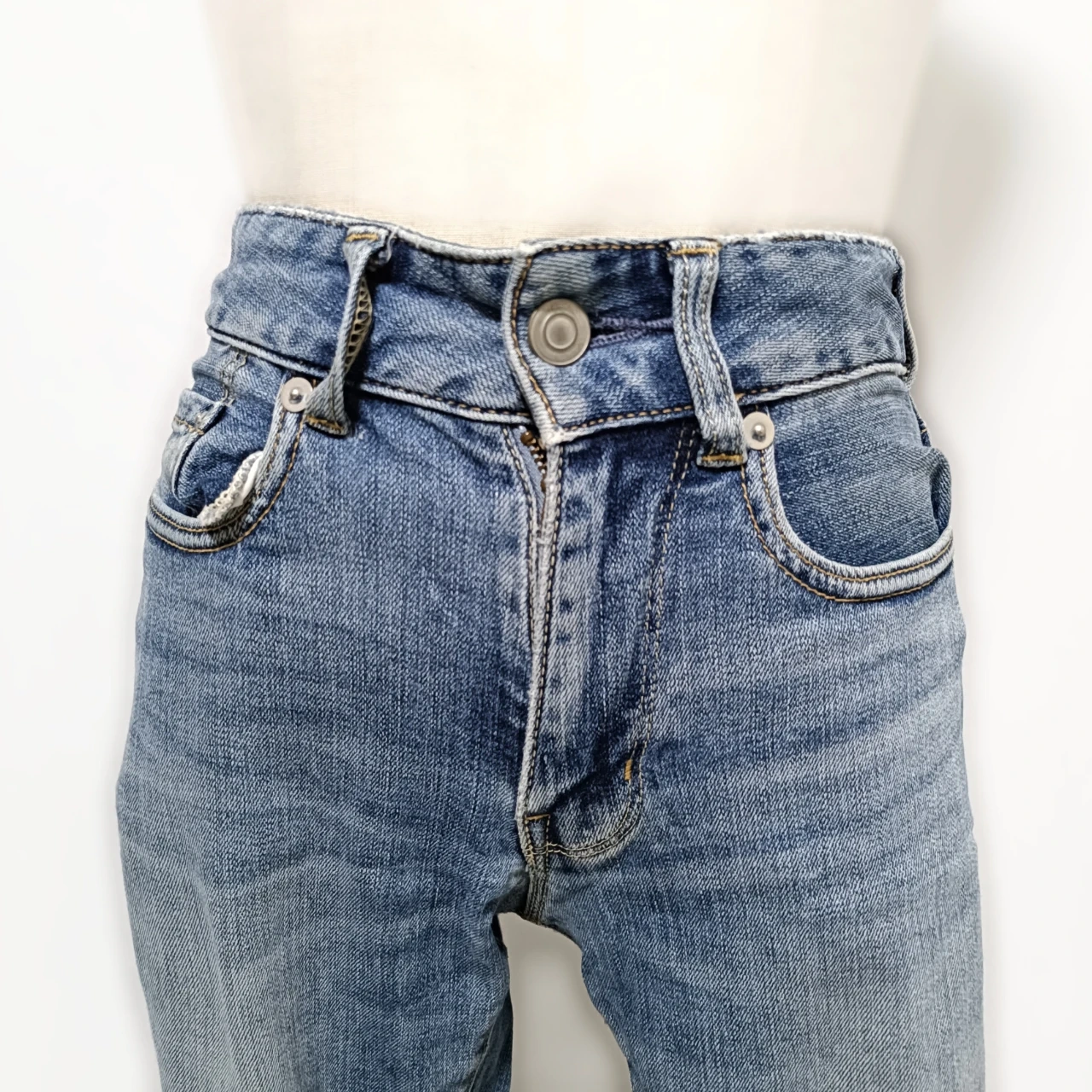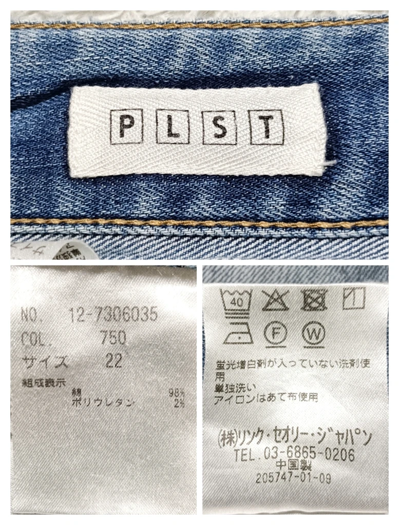 ご覧いただきありがとうございます! PLSTならではの美脚効果にこだわったスリムストレートデニムです。 綿をベースに**ポリウレタン2%**を配合しており、ストレッチ性が高く動きやすいです。 絶妙な色落ちのウォッシュ加工と、右足のダメージ加工がこなれ感のあるカジュアルスタイルを演出します。 □商品名□ PLST プラステ ダメージデニム 22 美脚スリムストレート ウォッシュ加工 □ブランド□ PLST プラステ □表記サイズ□ 22(XSサイズ相当) □実寸サイズ(cm) □ 【平置きサイズ】 ウエスト:32 着丈:85 ヒップ:40 わたり幅:24 股上:25 股下:60 裾幅:13 ※実寸につきまして多少の誤差はご了承ください。 ※表記サイズだけではなく実寸のサイズをご確認ください。 □カラー□ ライトブルー(ウォッシュ加工) □素材□ 綿98% ポリウレタン2% □コンディション□ 目立った汚れやダメージなど特にございません。 ※汚れはできる限り写真にて掲載しております。まずは画像をご確認ください。 どうぞよろしくお願い致します。 □商品管理番号□ O5-P-5584