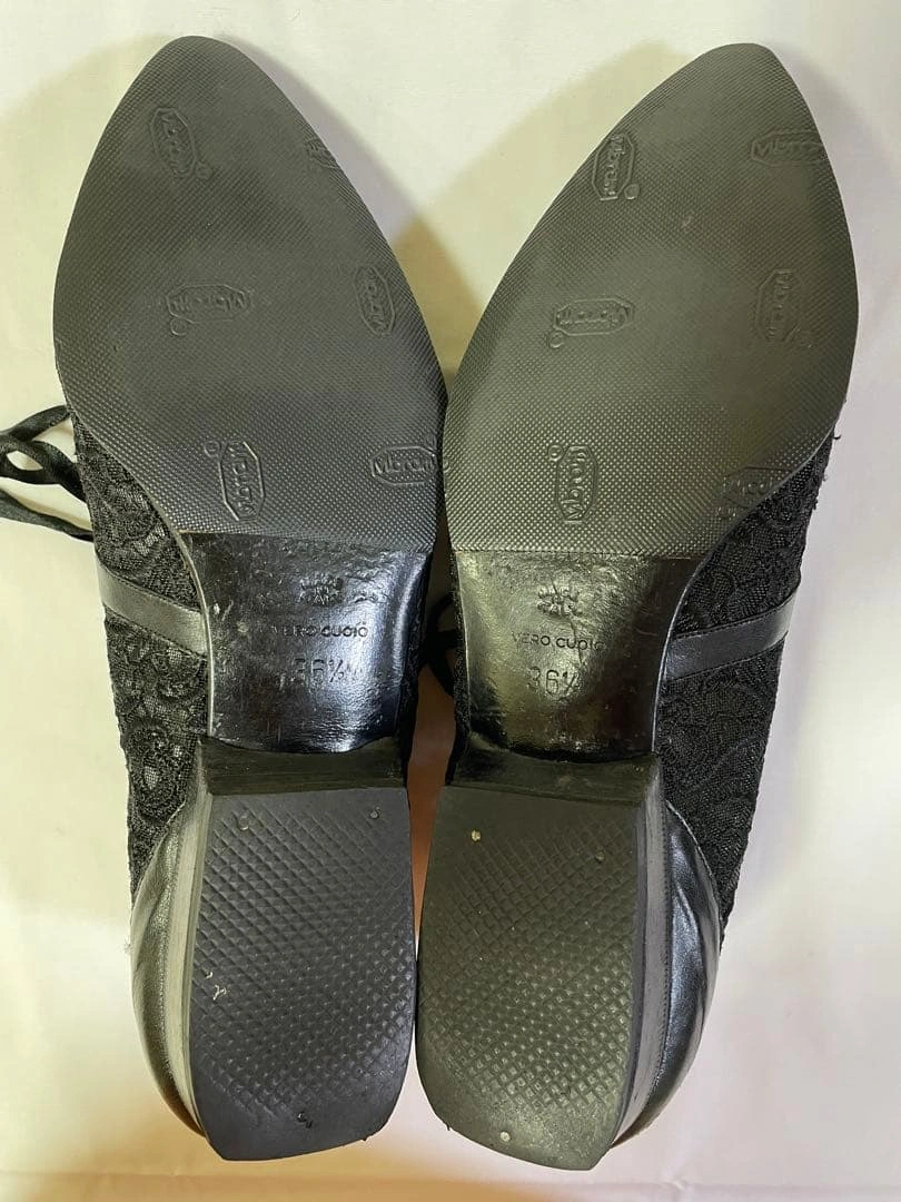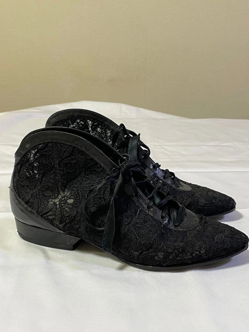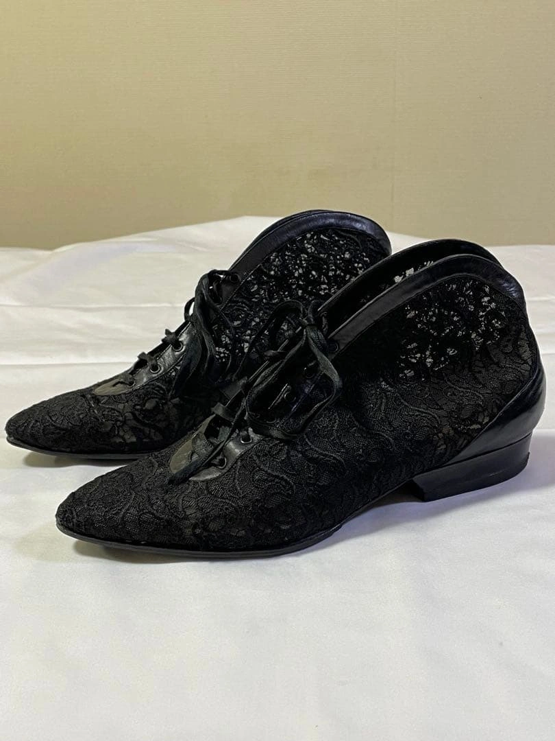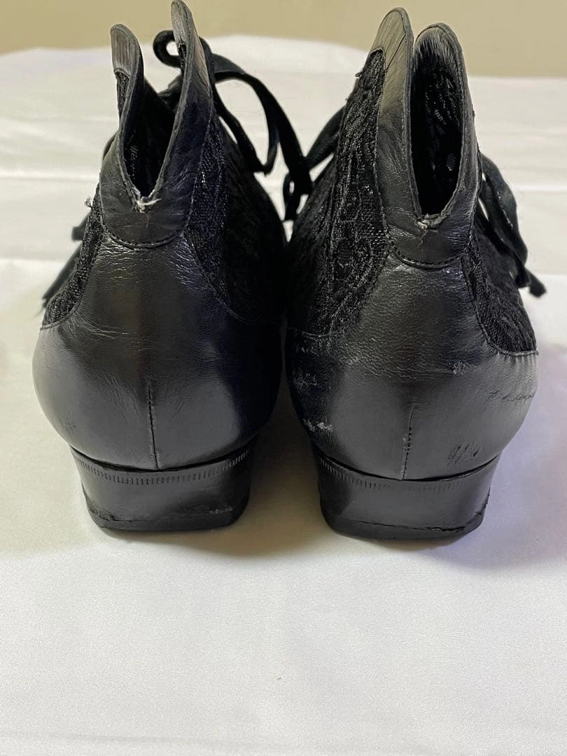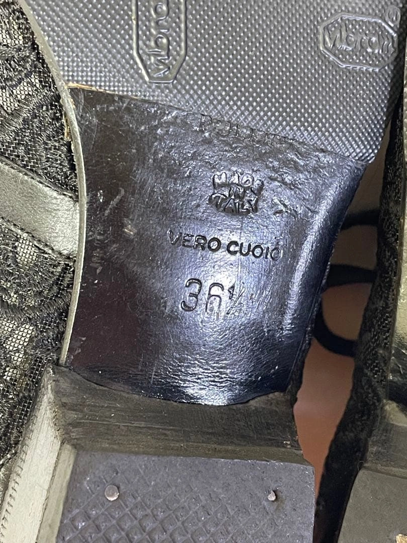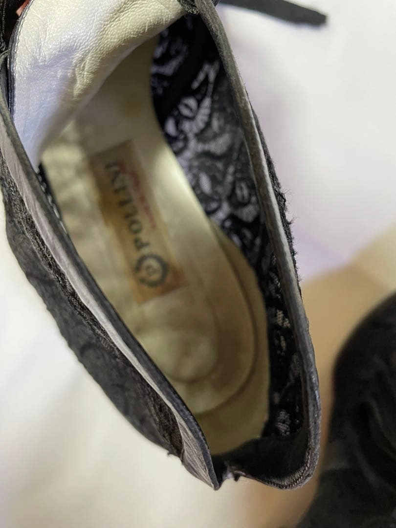 MADE IN ITALY POLLINI ポリーニのブーテイ(ショートブーツ)、レースパンプスです。 レース&レザーのお洒落なシューズです。 サイズ:36 1/2 23.5cm 数回着用しました。 右足踵の部分にコキズがあります。 usedにご理解のある方のご購入をお願い致します。