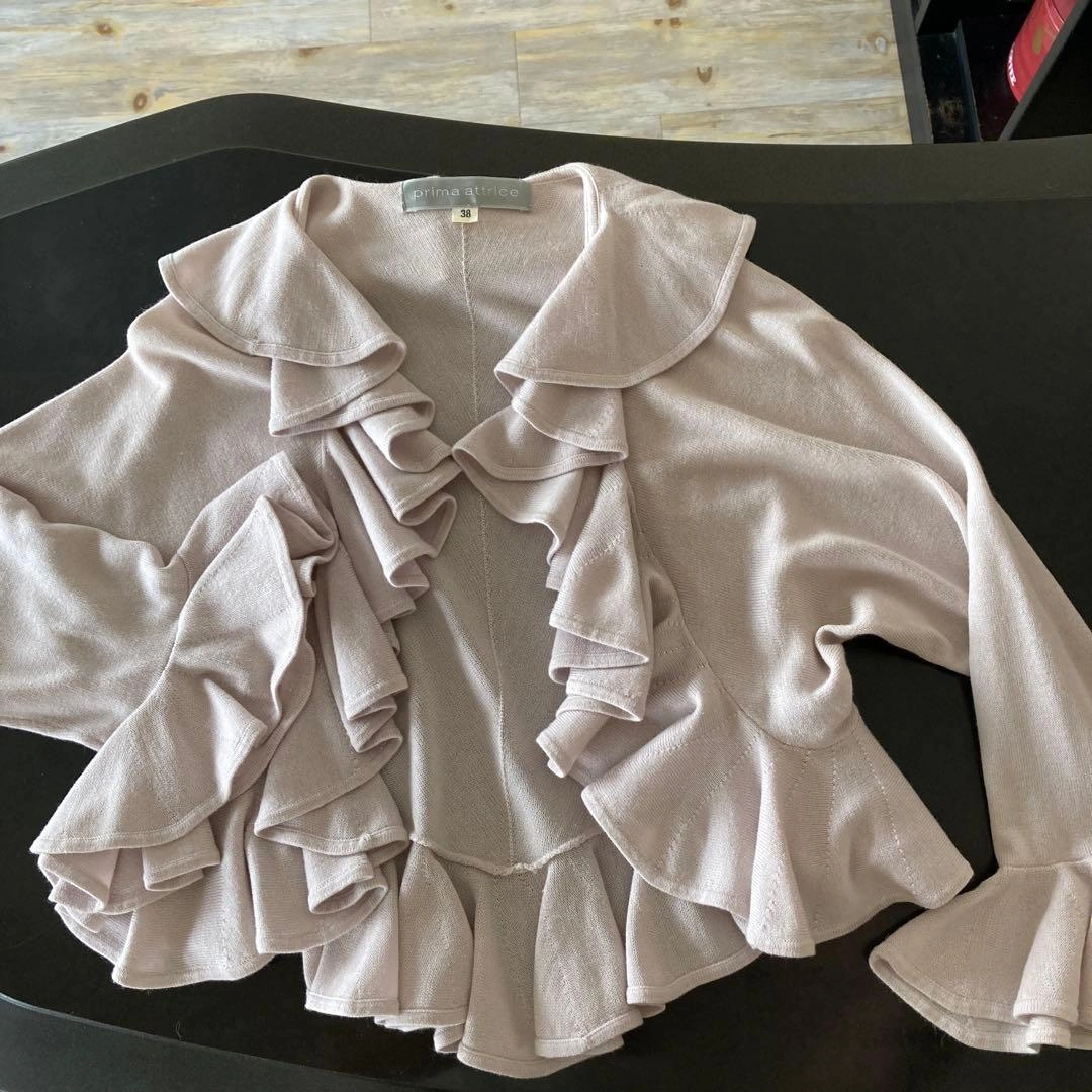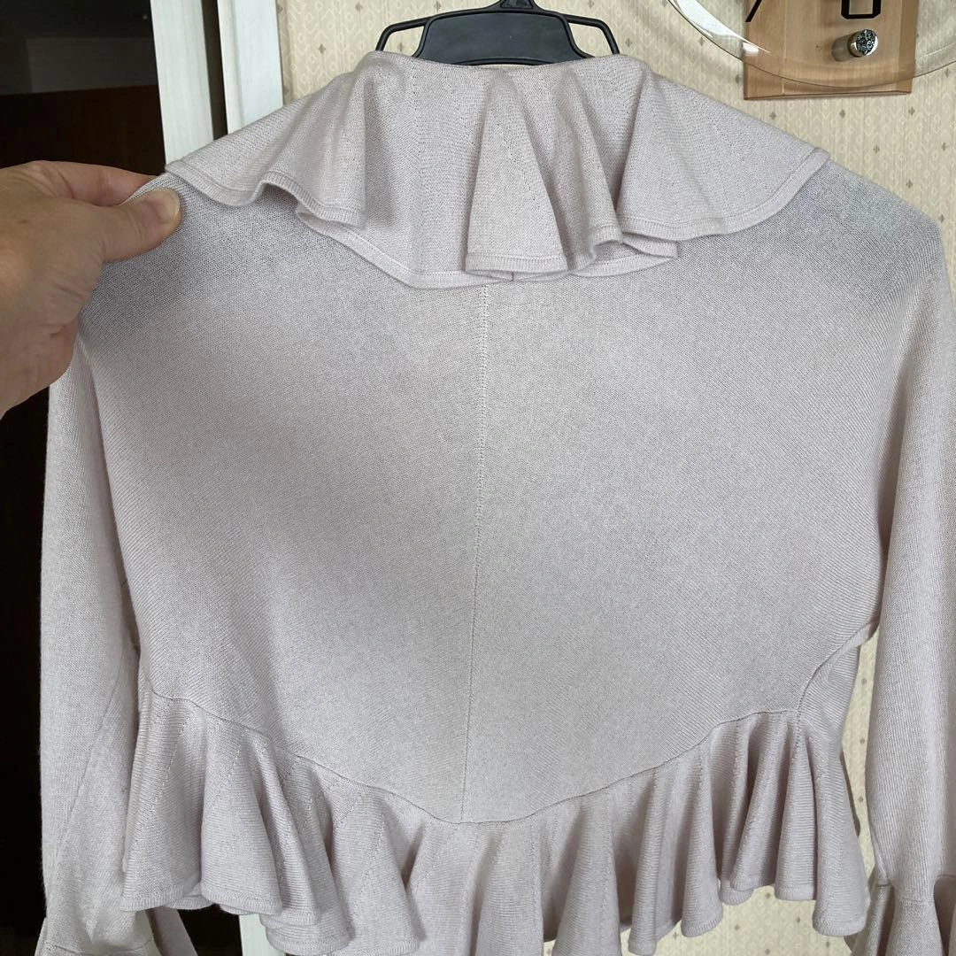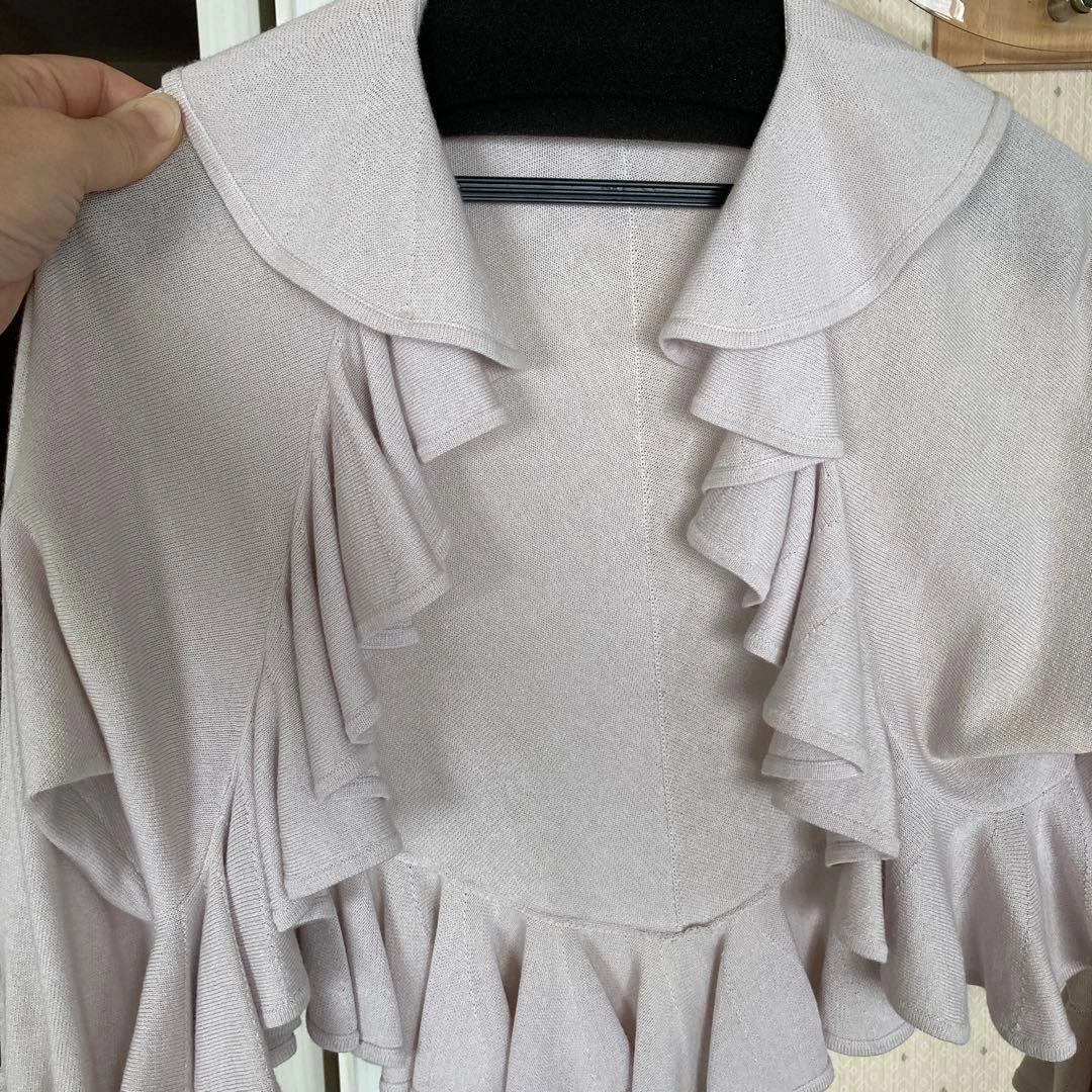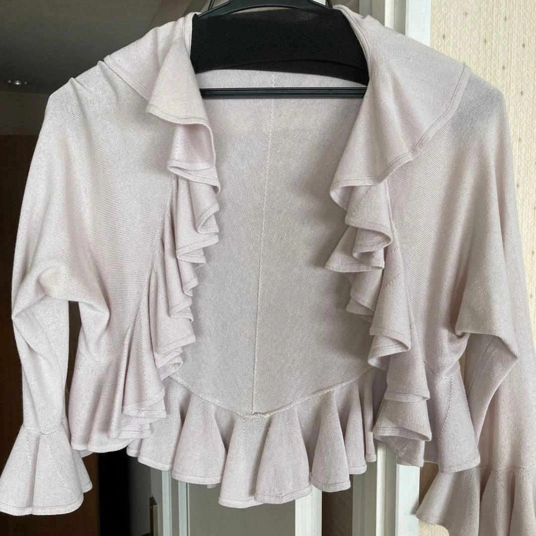 横浜高島屋で購入しました。 淡いピンク、紫のお色がどんなお洋服にも合います。 今の時期から七分袖は活躍します。 顔周りや袖全てにフリルがとてもかわいいです。 パーティでも恥ずかしく無い清楚さもあります。 ご希望の方はお気軽にご連絡ください。