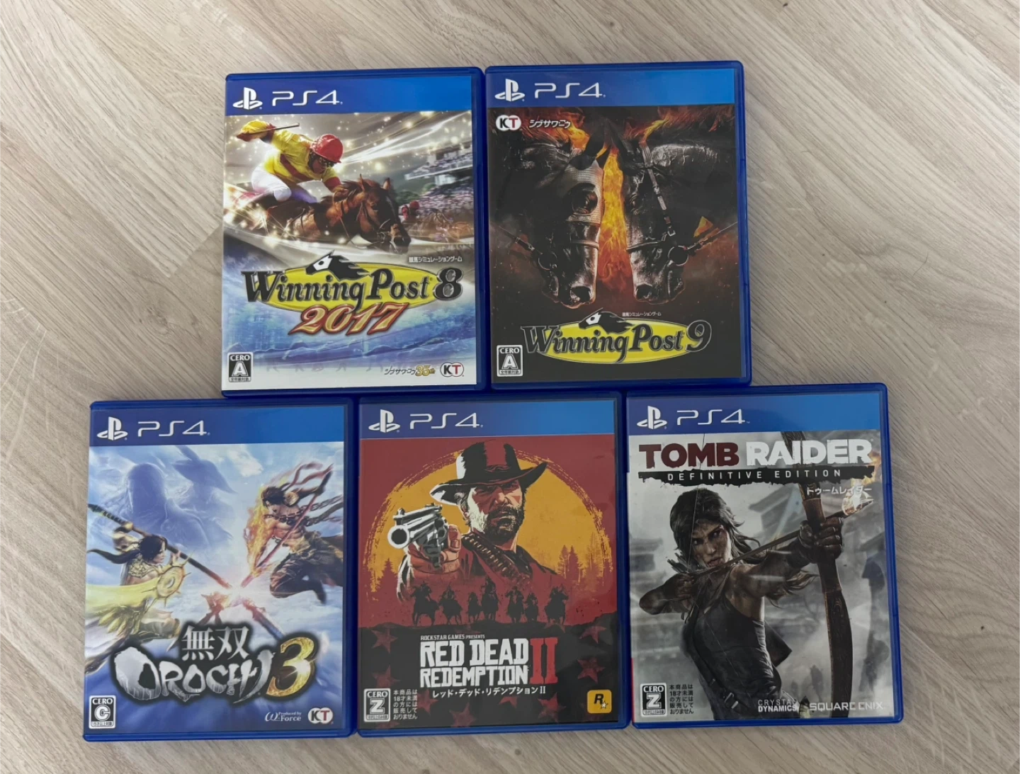 PS4のゲームソフト5本セットです。 ・Winning Post 8 2017 ・Winning Post 9 ・無双OROCHI 3 ・RED DEAD REDEMPTION II (レッド・デッド・リデンプション2) ・TOMB RAIDER DEFINITIVE EDITION (トゥームレイダー ディフィニティブエディション) 傷などありますが、使用には問題ありません 中古品であることご了承ください
