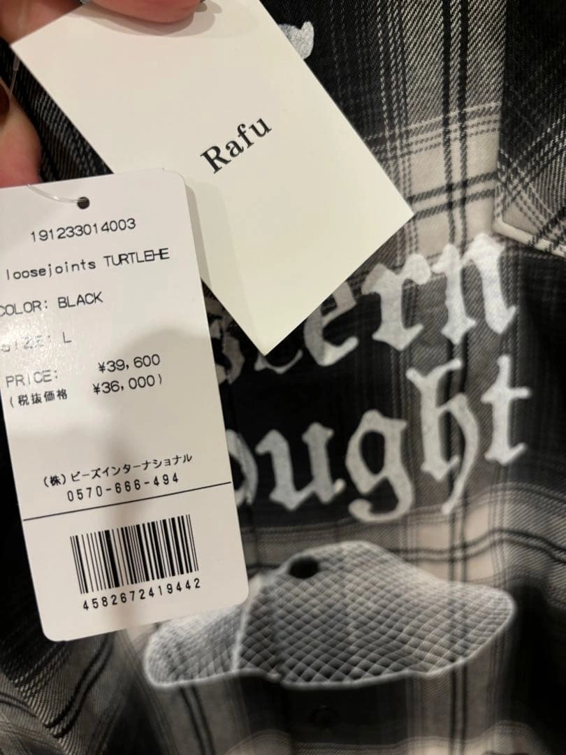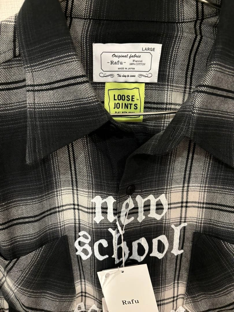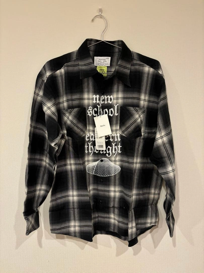 代官山スタイルズで購入 【デザイン】 このネルシャツは、クラシックなチェック柄に現代的なプリントが施されています。"new school"と"eastern thought"のメッセージが特徴的で、ストリートファッションにぴったりです。 【素材】 高品質な素材で作られており、着心地が良く、長時間の着用でも快適です。カジュアルなスタイルに最適です。 【サイズとフィット】 サイズはLで、ゆったりとしたフィット感があり、重ね着にも適しています。 - ブランド: Rafu - サイズ: L - 色: ブラック - 価格: ¥36,000 - 型番: 191233014003 - デザイン: チェック柄 - プリント: new school, eastern thought ご覧いただきありがとうございます。