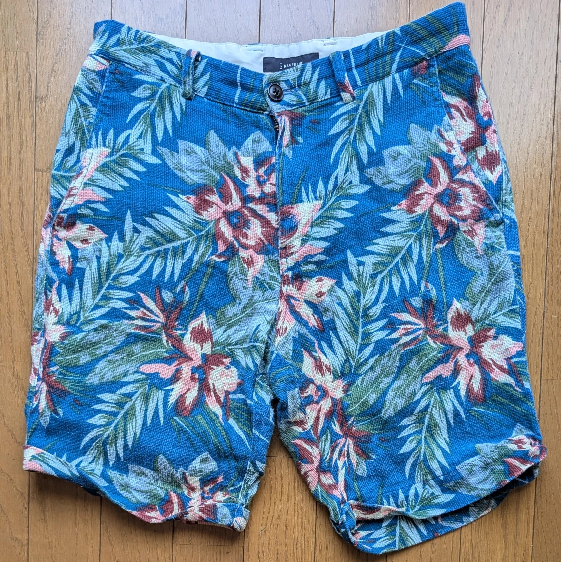 あたたかさ以前購入したレイジブルーのハーフパンツです。 夏の時期にはうってつけの一着です。 ウエスト...38cm ヒップ...50cm 股上...28cm 股下...20cm カラー...ブルー
