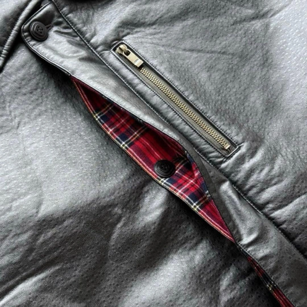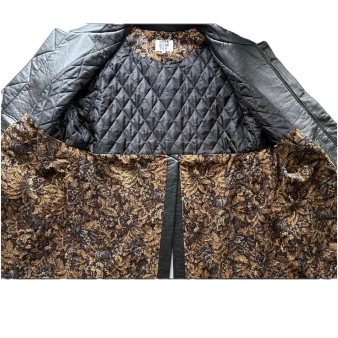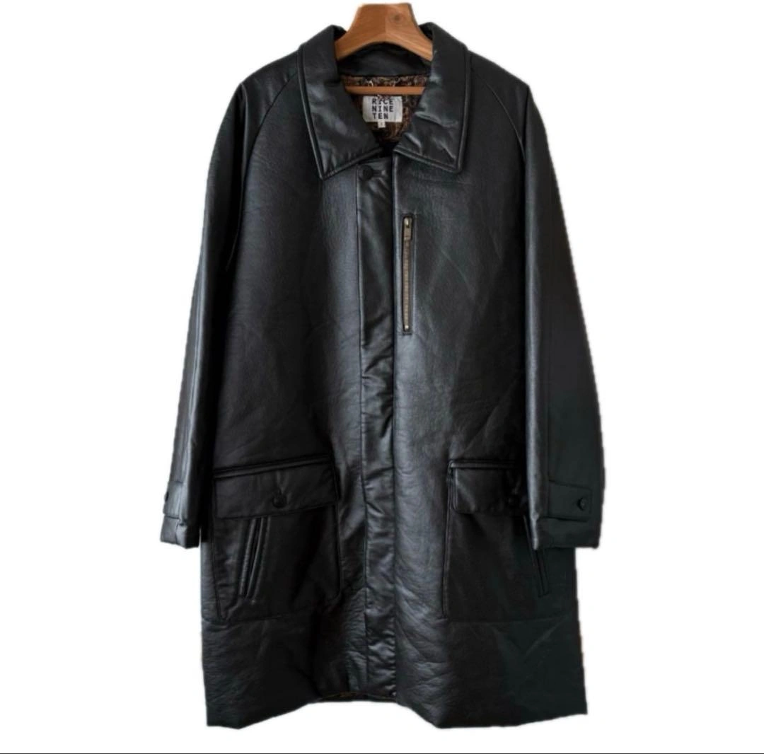 RICE NINE TEN ライスナインテン フェイクレザー スリットコート オーストリッチのような質感のフェイクレザー生地を使ったコートです。 比翼仕立てになっており、スリット部分はタータンチェックの生地になっています。 裏地にはコブラン織りの生地が使われています。 □カラー ブラック □素材 - □状態 目立つ汚れやダメージはありません。 □表記サイズ 1 □実寸サイズ 肩幅:約-cm 身幅:約65cm 着丈:約99cm 裄丈:約89cm