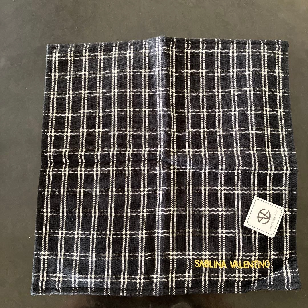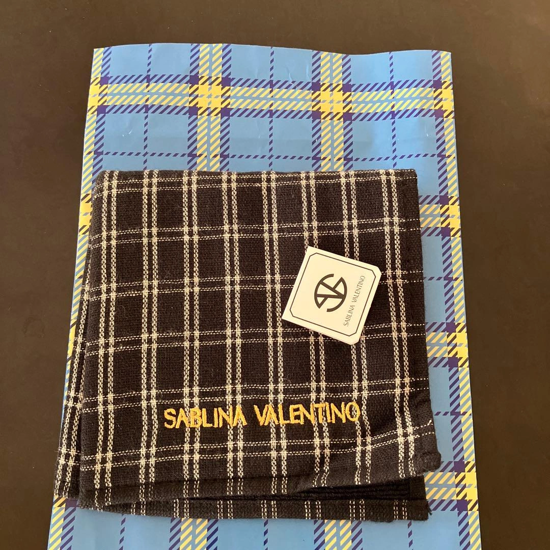 ブラックとホワイトのチェック柄、SABLINA VALENTINOの刺繍が施されたハンカチです。 ブランド: SABLINA VALENTINO 色: ブラック/ホワイトのチェック 刺繍: SABLINA VALENTINOの刺繍 デザイン: チェック柄 付属品: タグ付き ご覧いただきありがとうございます。 ご希望の方はお気軽にご連絡ください。