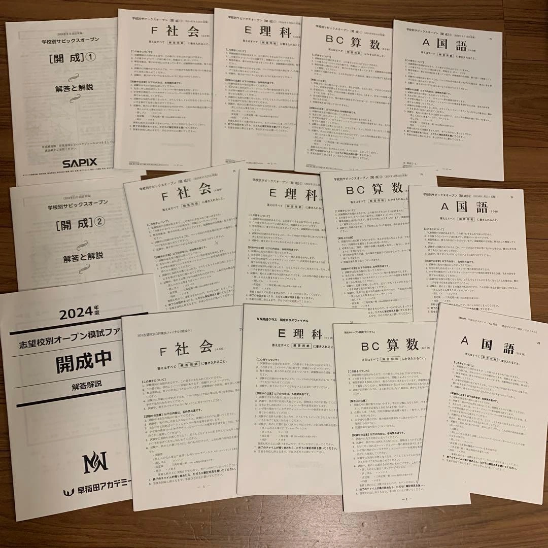 原本となります。 子供が解いた中古品につき、書き込みがあります。コンディションなど気になる方は購入をお控えください。 細かい見落としはお許しください。 すべて解答解説付き 国算理社 4科目 2024年度(2025年2月受験用) ●早稲田アカデミー 6年開成中オープン模試 ファイナル ●サピックス 学校別サピックスオープン 計2回 開成中① 2024/09/16 開成中② 2024/11/23 ご希望の方はお気軽にご連絡ください。
