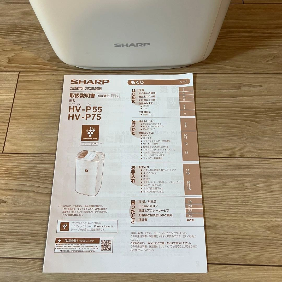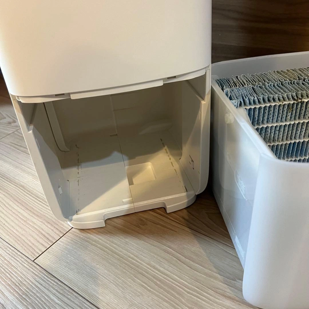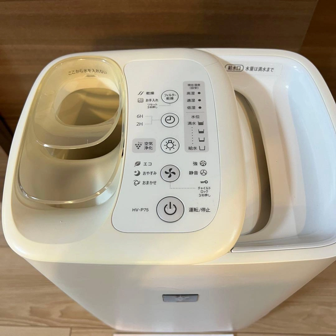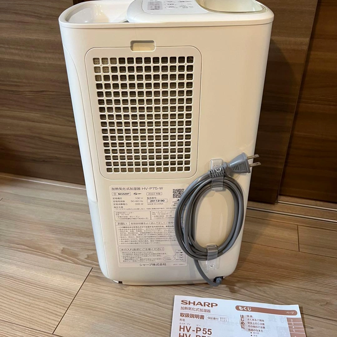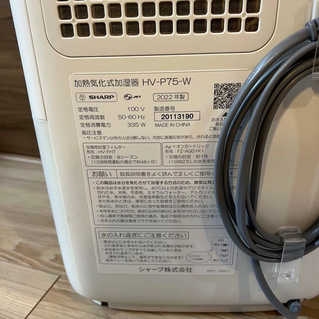シャープの加湿器です。 Amazon定価 33,800円 2年ほど使用しました。 手入れが楽で容量がたっぷりのところがとてもよかったです。 タンクの角が割れて少しかけてますが、使う分には問題ないかと思います。 ブランド:シャープ(SHARP) 色:ホワイト 加湿の適用床面積(目安):プレハブ洋室:15畳(25m) / 木造和室:9畳(15m) タンク容量:約4.0L ご希望の方はお気軽にご連絡ください。