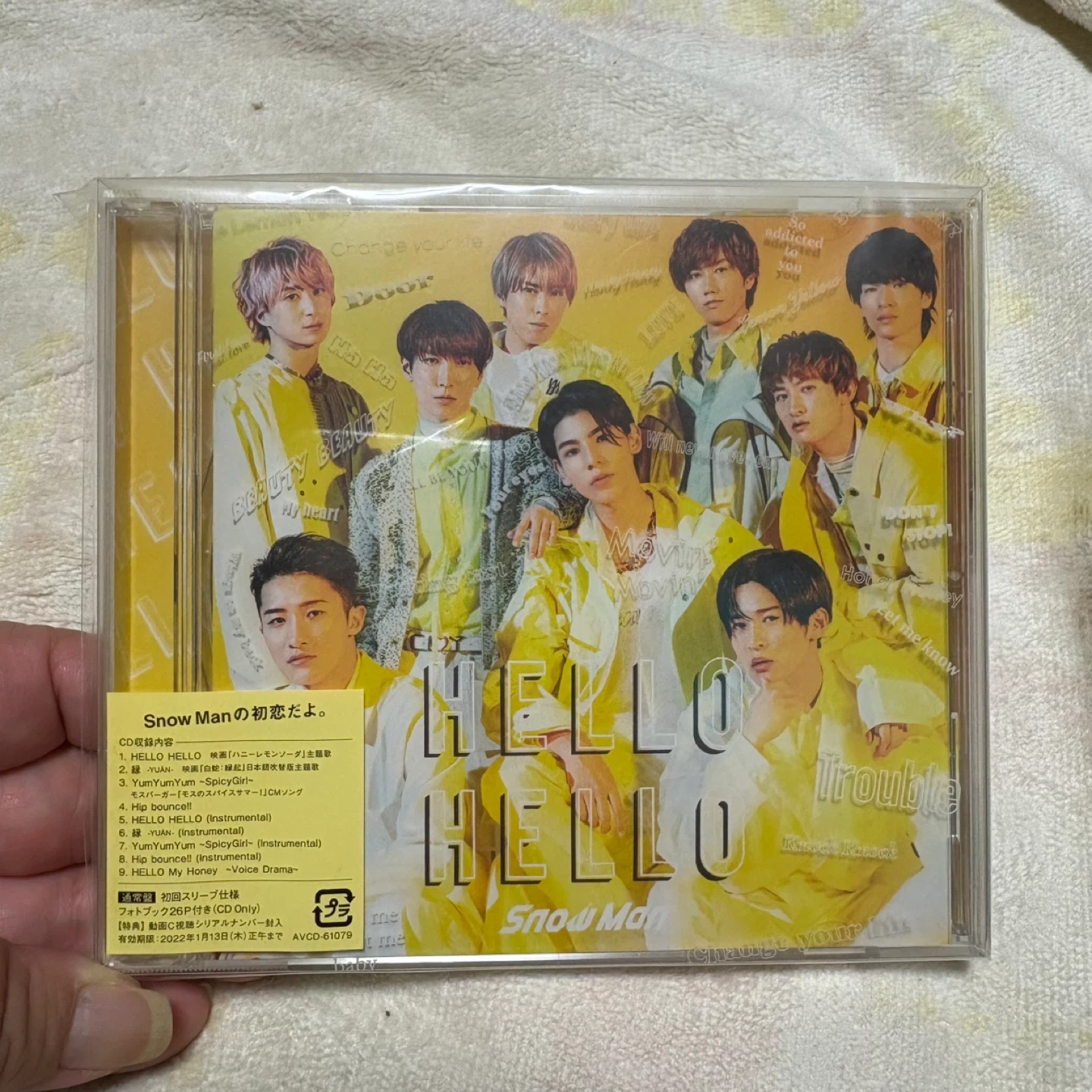 Snow ManのCDです ・タイトル: HELLO HELLO ・形態: 通常盤 (初回スリーブ仕様) ・特典: フォトブック26P付き ・型番: AVCD-61079 未開封ですが中古品であることご了承ください