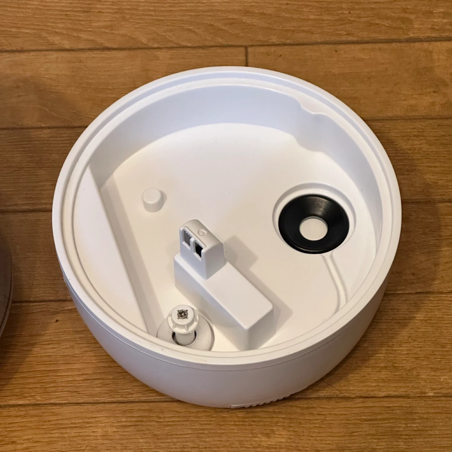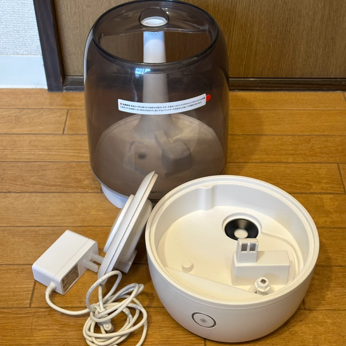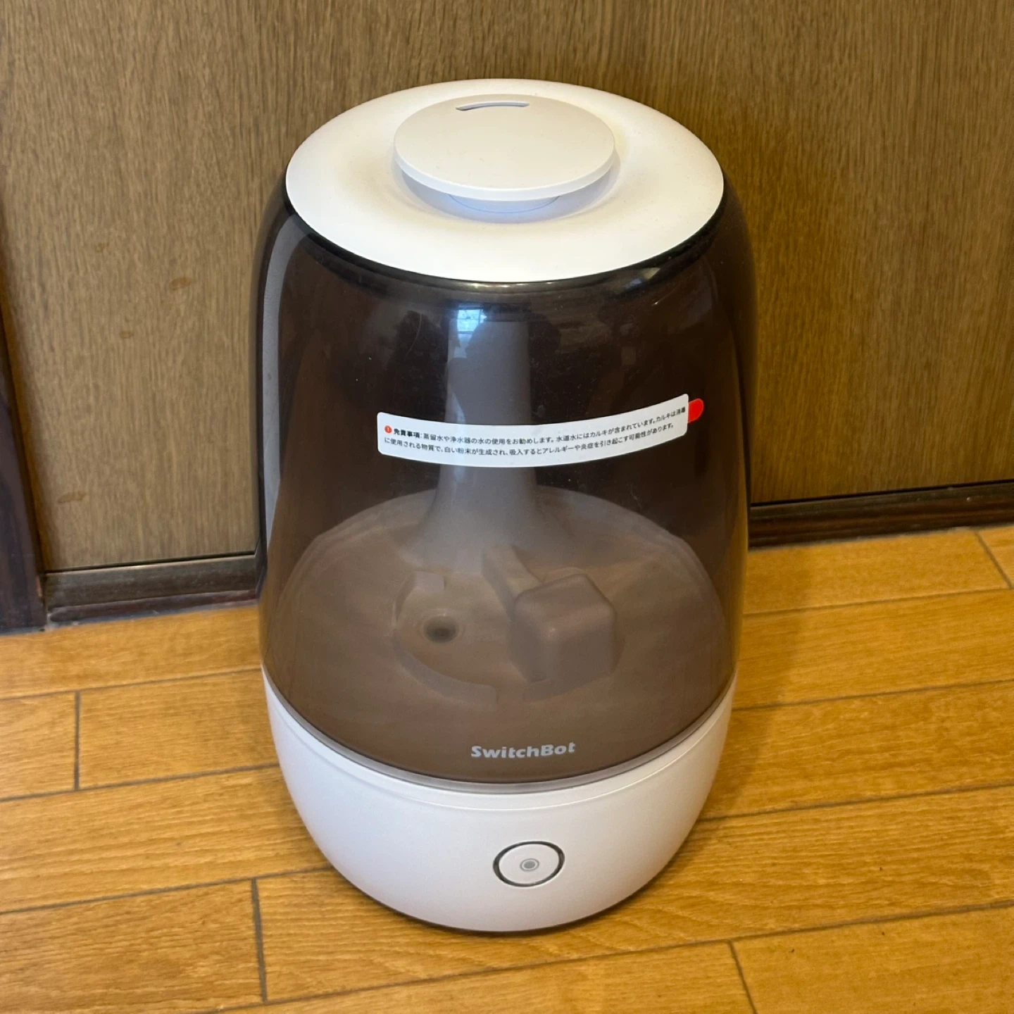 ご覧いただきありがとうございます。 SwitchBotのスマート加湿器です。 数回使用後、水洗いし保管しておりました。 アロマは使用しておりません。 外箱はない為、そのままのお渡しとなります。 【商品説明】 【長時間稼働 & パワフル加湿】 SwitchBot加湿器は3.5Lの大容量タンクを搭載。1度の給水で最大48時間連続運転でき、頻繫に給水する必要はありません。最大220ml/h のミストを噴出し、パワフルな加湿量で約6~15畳の部屋の湿度を効率よく保ちます。噴出されるミストは高さ約60cmで、オフィス、寝室、リビングルームの床や壁、インテリアが濡れる心配もありません。 【アプリで加湿量を無段階調整可能】 加湿器本体に搭載されたプリセットモードでは、強/中/弱/オートの4段階で加湿量を切替可能です。SwitchBotアプリを使えばミストの噴霧量を1%から無段階で調節でき、吹出口は360°手動で角度を調節できます。快適な湿度を保つことで、風邪やインフルエンザの予防に繋がり、お肌のトラブルや、喉の乾燥にも効果的です。また、付属のアロマトレーに好みのアロマオイルをセットすることで、アロマディフューザーとしてもお使いいただけます。極上のリラックス空間の演出にいかがでしょうか。 【上部からの給水でお手入れも簡単】 透明なデザインの給水タンクは、ひと目で水の残量が確認でき非常に便利。上部から給水するスタイルで、ポタポタと水が滴る重たい給水タンクを、蛇口まで持ち運ぶする必要はありません。タンクに水を入れた後、きっちり本体にはまっているかをご確認ください。給水口の直径は約12㎝、給水タンクの清掃も簡単です。セラミックフィルター付属で、菌の繁殖や悪臭を抑え、常に清潔さを保つことができます。 【空焚き防止機能 & 水残量低下アラート通知】 空焚き防止および転倒時自動運転停止機能が付いているので、稼働中に水が無くなっても安心して使用可能。 水の残量が一定量を下回った際は、スマホにアラート通知も届きます。お子様やペットがいる家庭でも快適に加湿器をご利用いただけます。※給水タンクの水が無くなる場合、ご使用をお控えください。 【遠隔操作 & タイマー機能 & 省エネ】 スマホのアプリを通し加湿器をコントロール可能なため、加湿器の消し忘れも防げます。乾燥する冬の時期など、帰宅前にSwitchBotスマート加湿器をONにすることで、帰宅時にはお部屋の湿度が快適な状態に。アプリでタイマーを設定すれば、電気代の節約にも繋がります。 【音声コントロール】 Amazon EchoやGoogle Homeなどスマートスピーカーと連携し、音声で加湿器の電源をオン/オフでき、離れた場所から声だけで簡単に操作可能です。AppleSiri、LINE CLOVA、IFTTTなどにも対応。 【その他SwitchBot製品と連携】 SwitchBotハブミニ、SwitchBot温湿度計と連携すれば、「部屋の湿度が40%以下で加湿器の電源をON」というシーンをアプリで設定し自動化を図れます。部屋をいつでも自動で心地よい環境に保ちたい人はぜひ試してみてください。 ご質問等ございましたらお気軽にご連絡下さい。 どうぞよろしくお願いいたします。 加湿器 スイッチボット