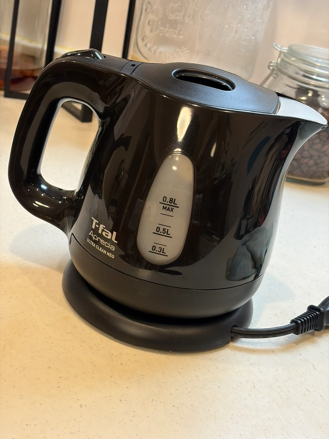 ティファール アプレシア ウルトラクリーン ネオ 0.8Lです。 カラーはブラック。 2023年購入、約2年使用しました。 抗菌Ag+フィルター付きで清潔、カップ1杯分なら約1分で沸騰します。 動作確認済み、問題なく使えます。 一人暮らしにちょうど良いサイズです。 溝の口駅周辺で手渡し希望。 お気軽にコメントください!