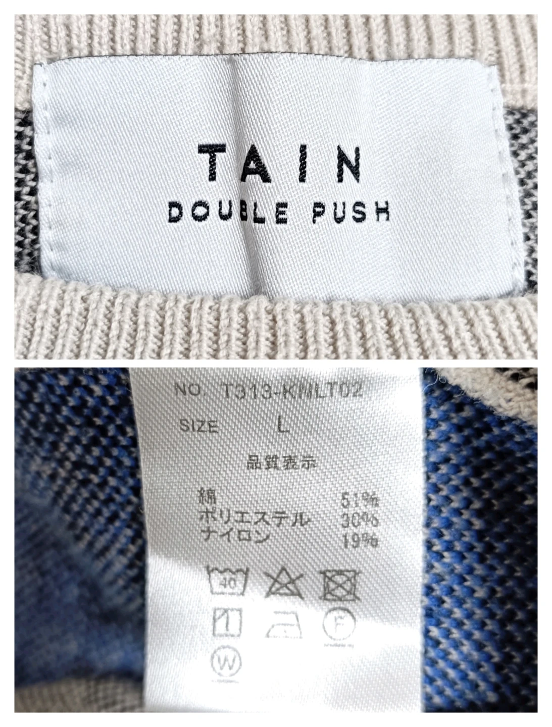 TAIN DOUBLE PUSH トレーナースウェット バックロゴ L ベージュ