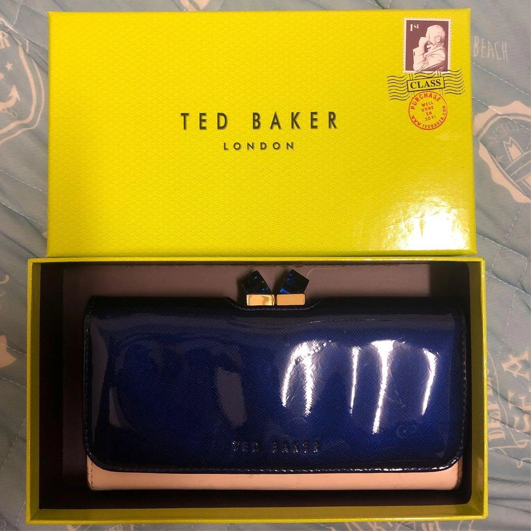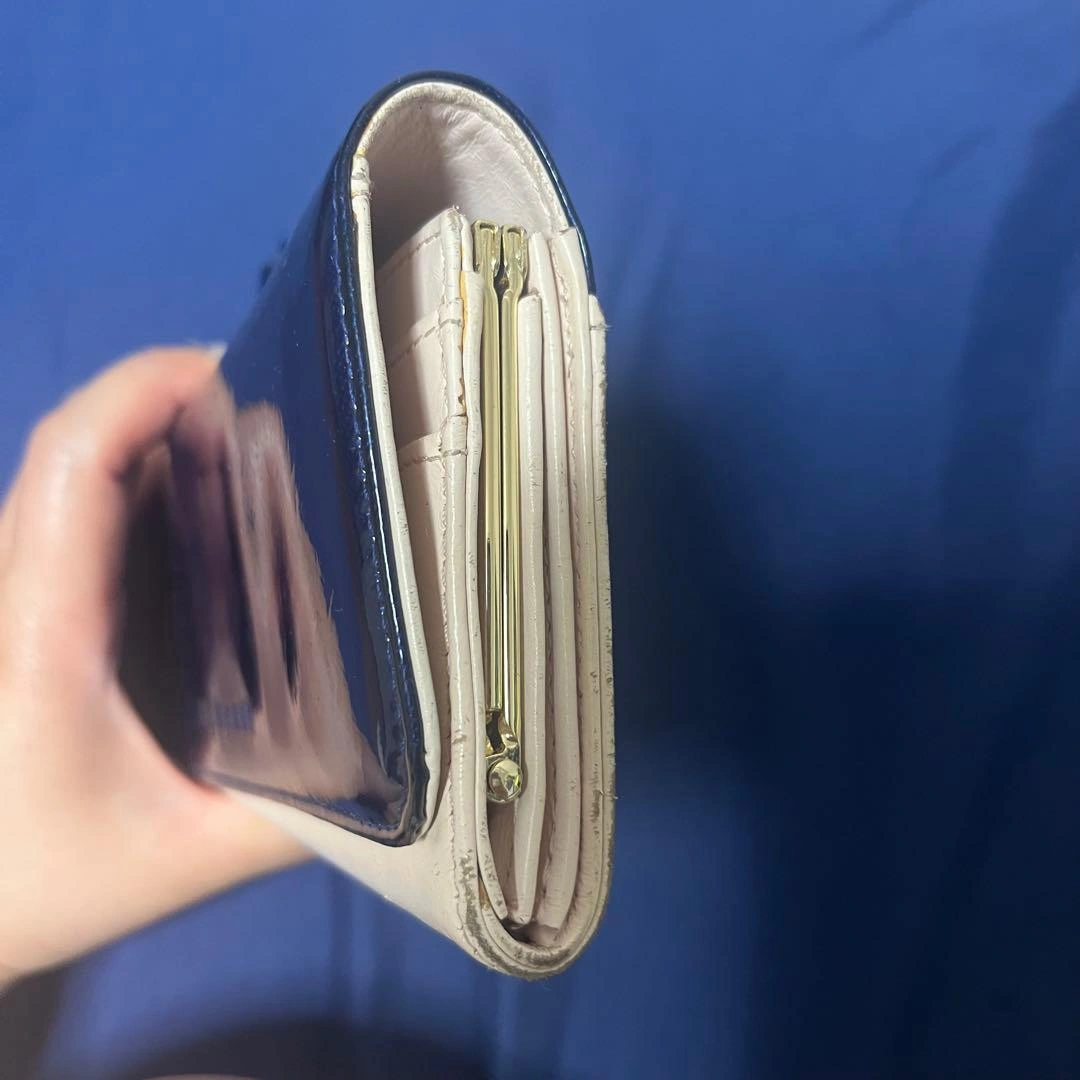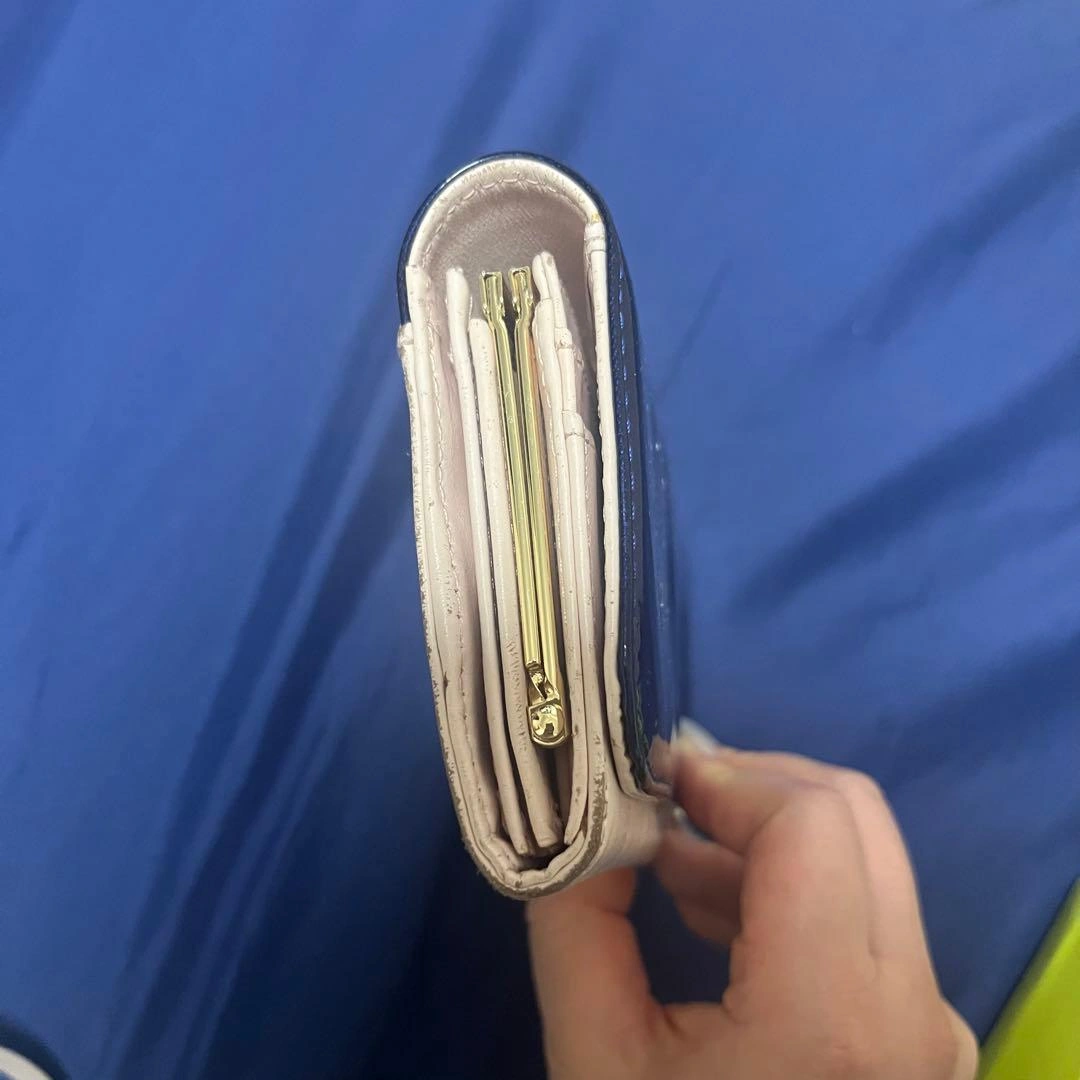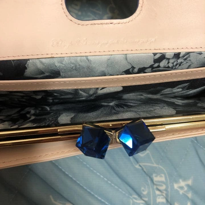 TED BAKERのがま口長財布です。がま口の部分がクリスタルのような形で、ブルーと淡いピンクのバイカラーで大人かわいいデザインです!中も白黒の花柄がデザインされており、開けても閉じても可愛い財布となっております! 1年ほど使用したので、かなり使用感はありますが、このデザインはとても人気とのことです。定価は3万円ぐらいでした。 ※箱なしで発送予定ですが、必要な方はご相談ください。 ご希望の方はお気軽にご連絡ください。