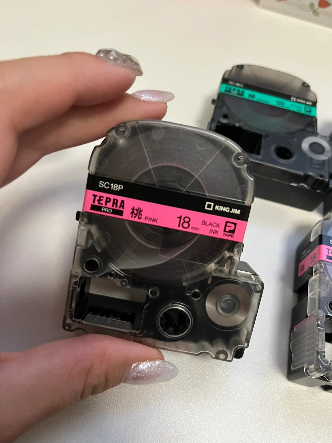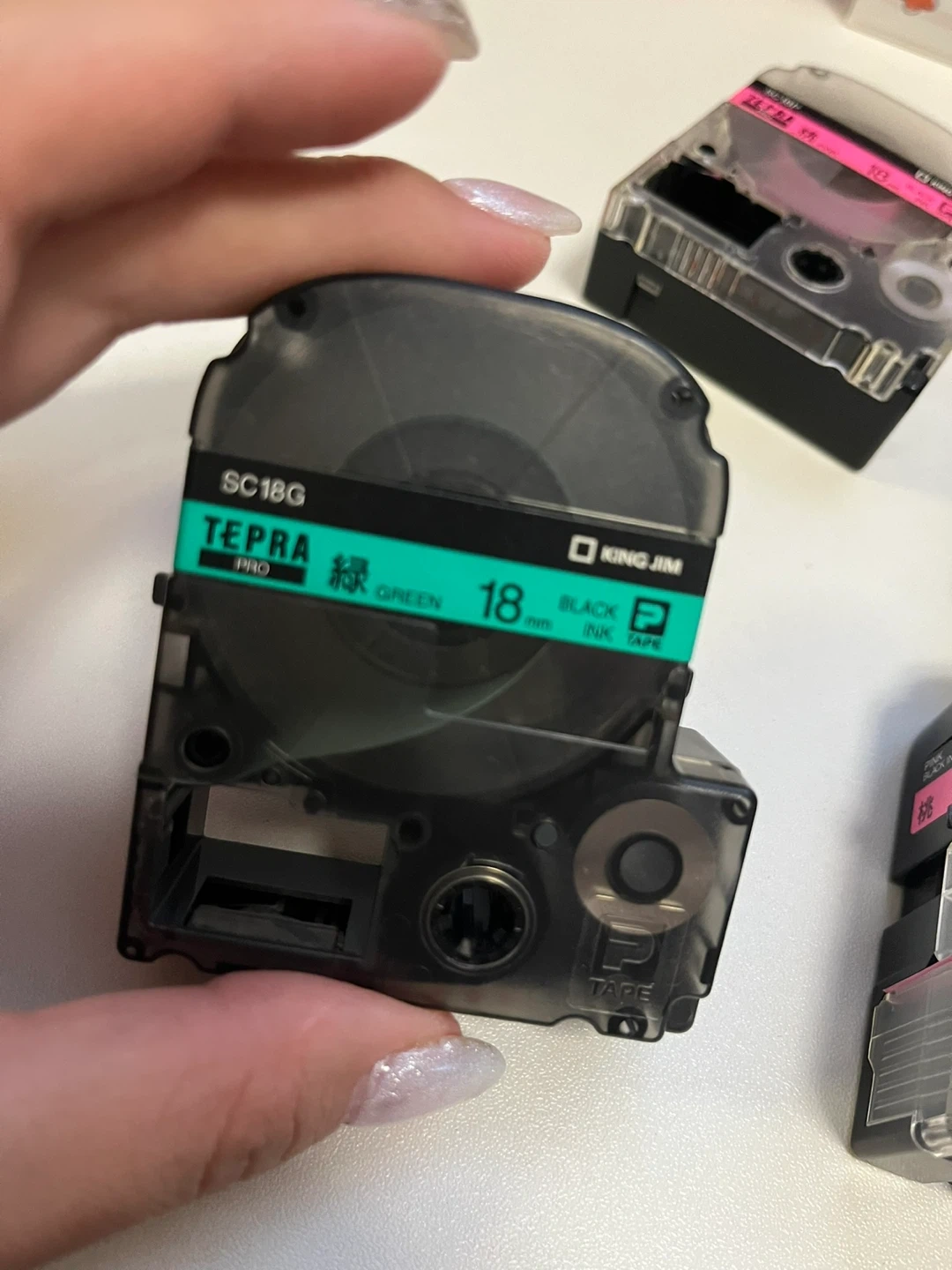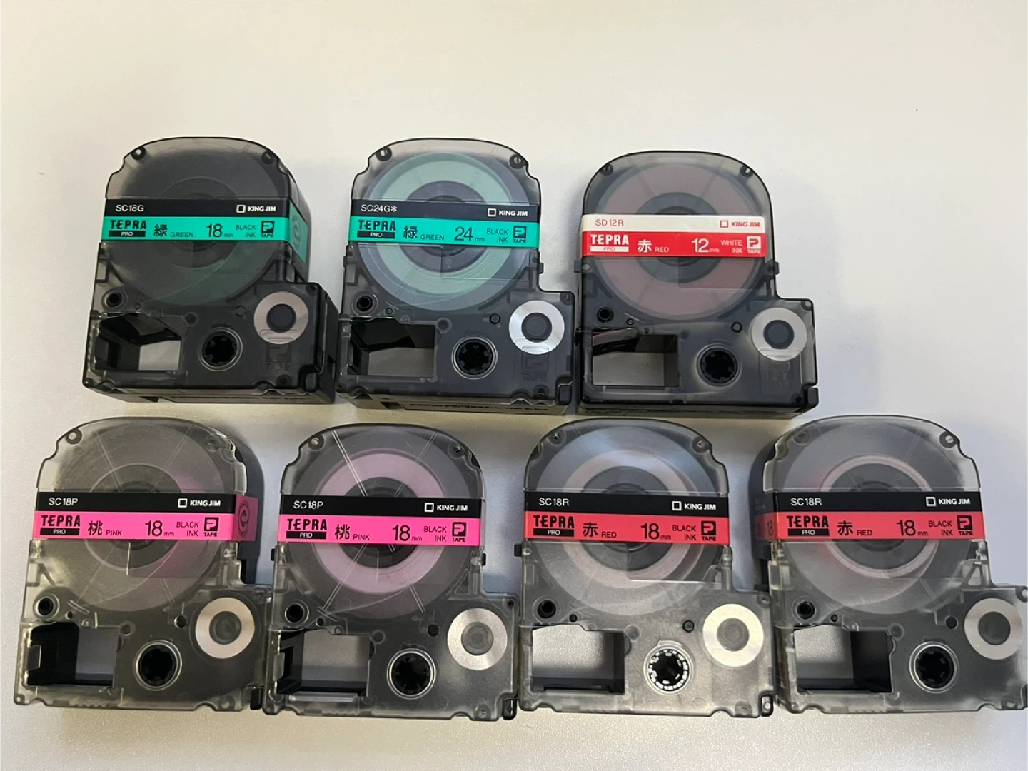 TEPRAラベルテープ 18mm幅、ピンク、グリーン、赤 ※写真追加の18mmのピンク、緑、赤 残量少し オマケ程度に考えてください モデル: TEPRA SC18P ピンク サイズ: 18mm モデル: TEPRA SC18G 緑 サイズ:18mm モデル:TEPRA SC18R 赤 サイズ:18mm モデル:TEPRA SD12R 赤 サイズ:12mm モデル:TEPRA SC24G* 緑 サイズ:24mm 計7個です。 ジップロックに入れて簡易包装です。 ご希望あれば梱包方法、変えますので お申し付けください。