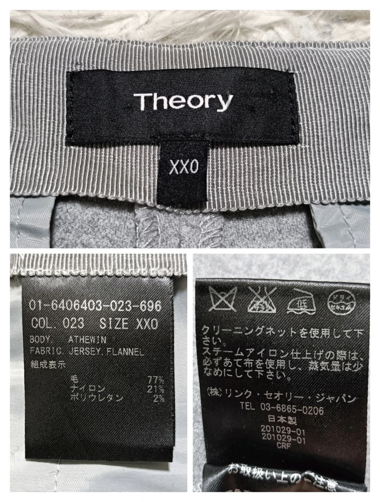 ご覧いただきありがとうございます! Theory(セオリー)の暖かく快適な履き心地のジャージーウールパンツです。 ウール77%配合のジャージーフランネル素材で、これからの季節に暖かく着用いただけます。 ナイロンとポリウレタンが混ざっているため、ストレッチ性があり、動きやすく非常に快適です。 □商品名□ Theory セオリー ジャージーウールパンツ グレー XX0 クロップド丈 □ブランド□ Theory セオリー □表記サイズ□ XXO (XS~S相当) □実寸サイズ(cm) □ 【平置きサイズ】 ウエスト:34 着丈:78 ヒップ:40 わたり幅:20 股上:28 股下:50 裾幅:16 ※実寸につきまして多少の誤差はご了承ください。 ※表記サイズだけではなく実寸のサイズをご確認ください。 □カラー□ グレー □素材□ 毛77% ナイロン 21% ポリウレタン 2% □コンディション□ 目立った汚れやダメージなど特にございません。 ※汚れはできる限り写真にて掲載しております。まずは画像をご確認ください。 どうぞよろしくお願い致します。 □商品管理番号□ N3-P-5567