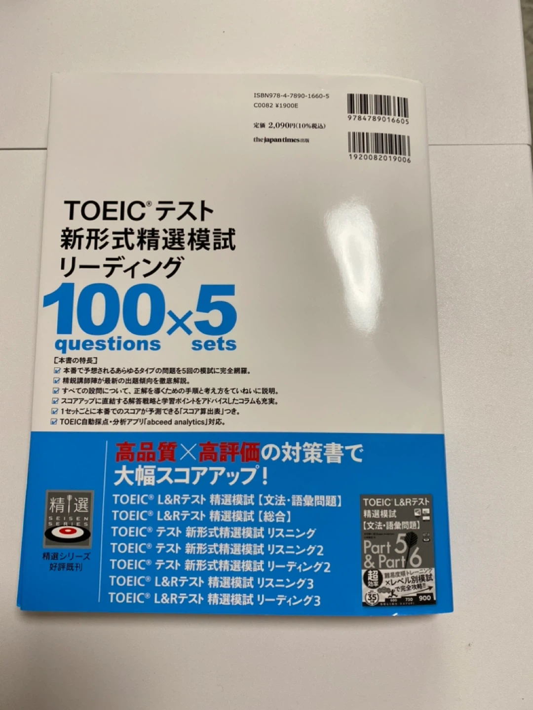 TOEIC 新形式精選模擬リーディング リーディングに特化した問題集です。 上級者向き 書き込みなし 今年10月購入 定価¥2090 アプリに対応 受け渡し場所: 電車の場合 1)井の頭線 東松原駅 2)小田急 梅ヶ丘駅 車/自転車等の場合 1)ファミリーマート松原6丁目 (北沢税務署近く) 駐車場有り
