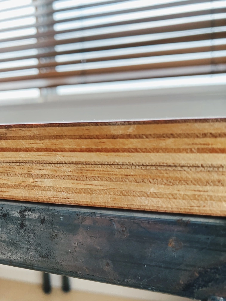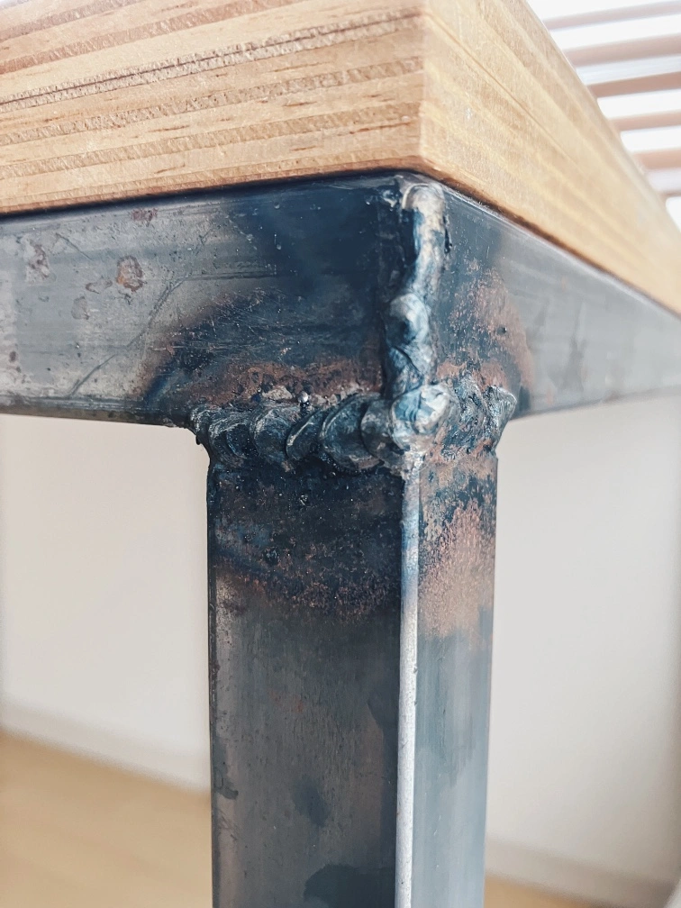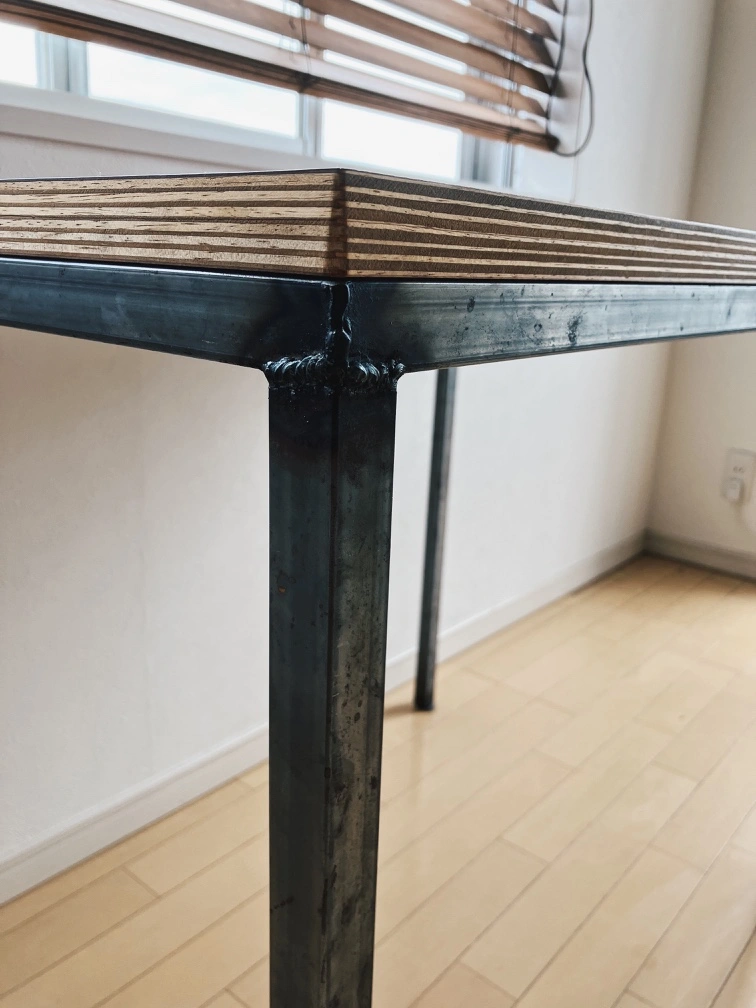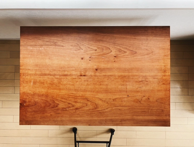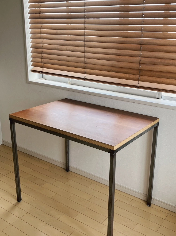 2022年3月に東京のDIYやリノベーションに特化したインテリアショップ「toolbox」で購入したテーブルです。 「角パイプフレーム脚」と「突板合板チェリー板目」を組み合わせたもので、木目の美しさや、木肌のやわらかさを感じられる特別な仕上げが施されています。 大切に使用していたため状態は良好ですが、木材特有のワレや小さな傷、色褪せが少し見られます。致命的なダーメージはありません。 脚の底にはアジャスターが付いていますので、がたつきがある場合は調整が可能です。 画像にて状態をご確認の上、ご判断いただければと思います。中古品という点をご理解いた だいた上でのご購入をお願い致します。 不明点があればご質問ください。簡易清掃・消毒済みです。 世田谷区等々力の自宅まで引き取りに来ていただける方に限らせていただきます。 (エレベーターあり。) 引き取りの詳細は、メールでの問合せをお願いいたします。 商品詳細: 【定価】脚+突板合板:58,320円(税込) 【サイズ】幅900 × 奥600 × 高735 mm 【天板】突板合板チェリー板目(無塗装、面取り加工なし、サンディング処理なし、タテ貼り) 参考ページ:https://shorturl.at/P9NNx 【脚】角パイプフレーム脚(スチール製、溶接跡や錆びをあえて残したデザイン) 参考ページ:https://shorturl.at/g6DSu よろしくお願いします。