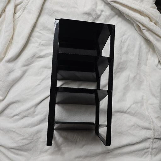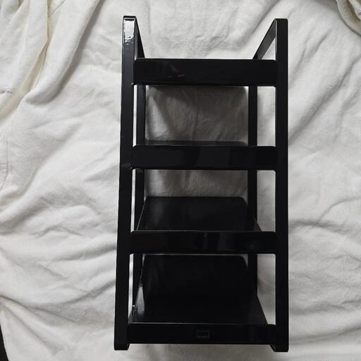 中古品です。 目立つ傷等は写真(⑤)以外特にありませんが、黒の為多少のスレ等があります。 気になる方はご遠慮ください。 キッチンのシンク下を有効活用し、ボトルを収納できるストッカーです。油や醤油、お酢などのボトルを収納できます。棚板が斜めになっているので、ボトルが出し入れしやすいです。 洗面台の下で洗濯用の液体洗剤やシャンプー、ボディソープなどのボトルの収納にもお使いいただけます。 水や汚れに強い粉体塗装を施したスチール製です。 カラー:ブラック サイズ: 本体:約 幅20×奥行20.5×高さ40cm (棚内寸) 幅17×奥行20×高さ10cm 材質:本体:スチール(粉体塗装) 仕様: 耐荷重:各棚約2kg 収納可能サイズ:長さ約30cm以下のボトル、約1Lサイズ(直径約8cm以下)のボトル約8本 ご希望の方はお気軽にご連絡ください。