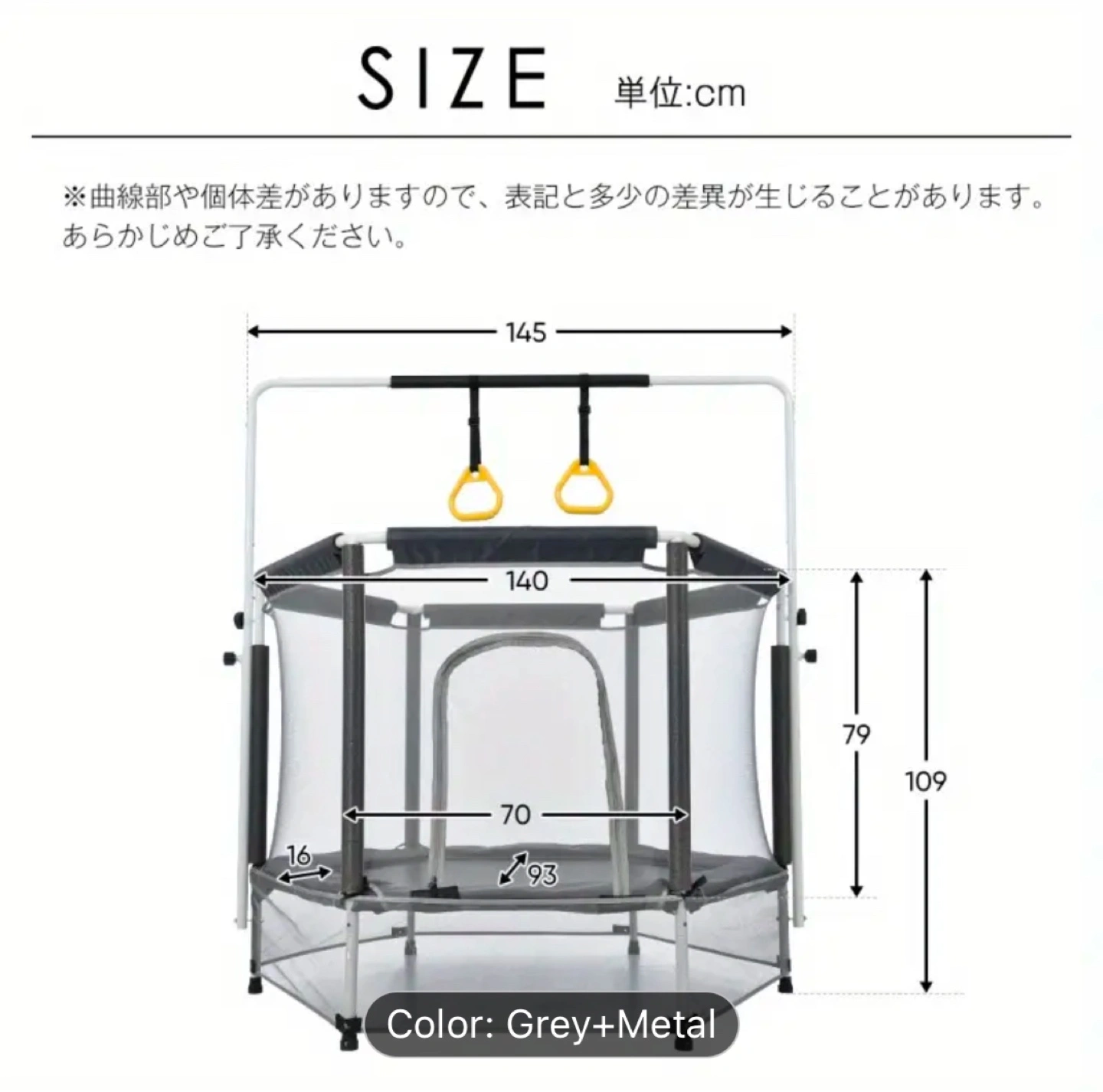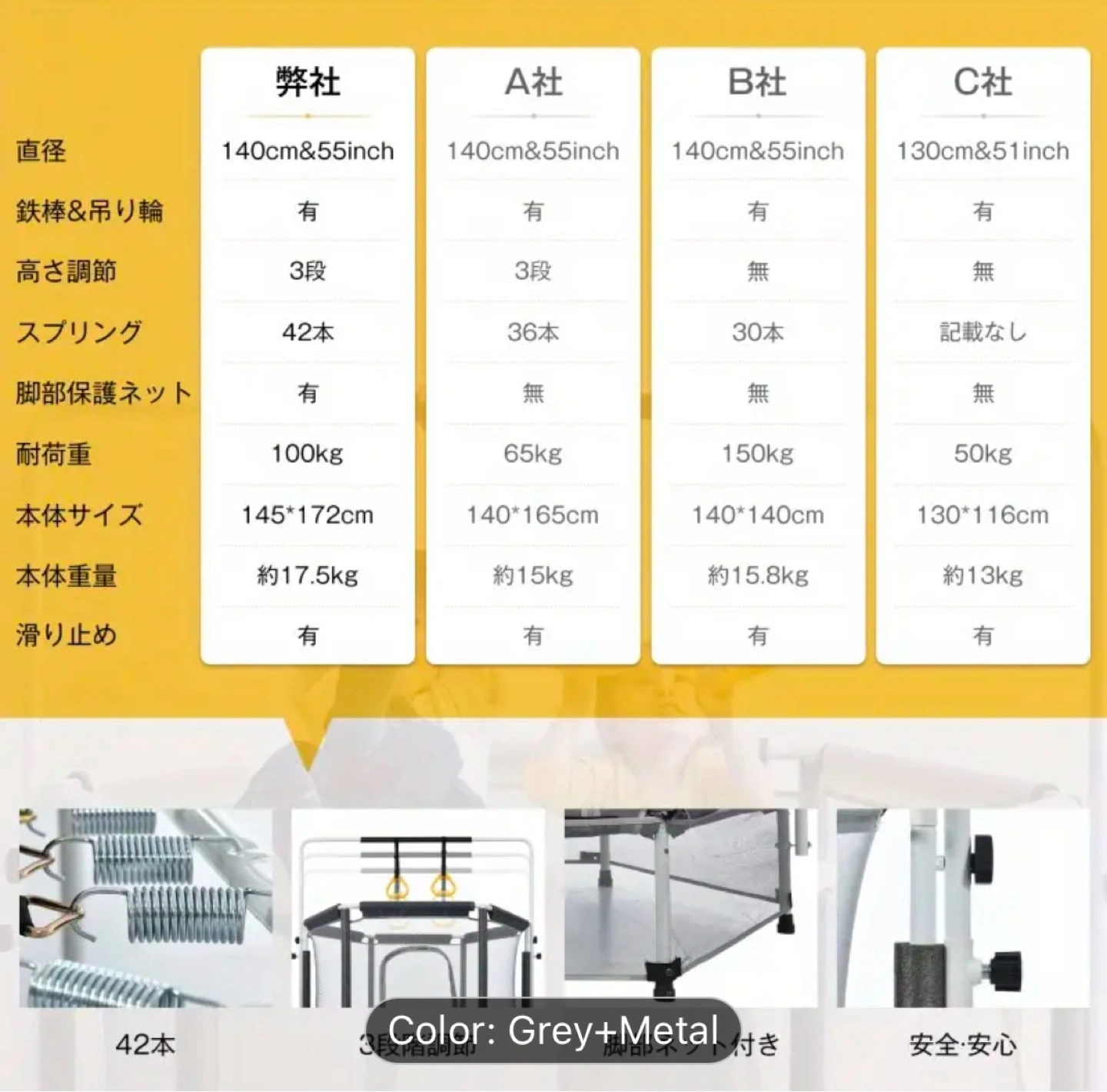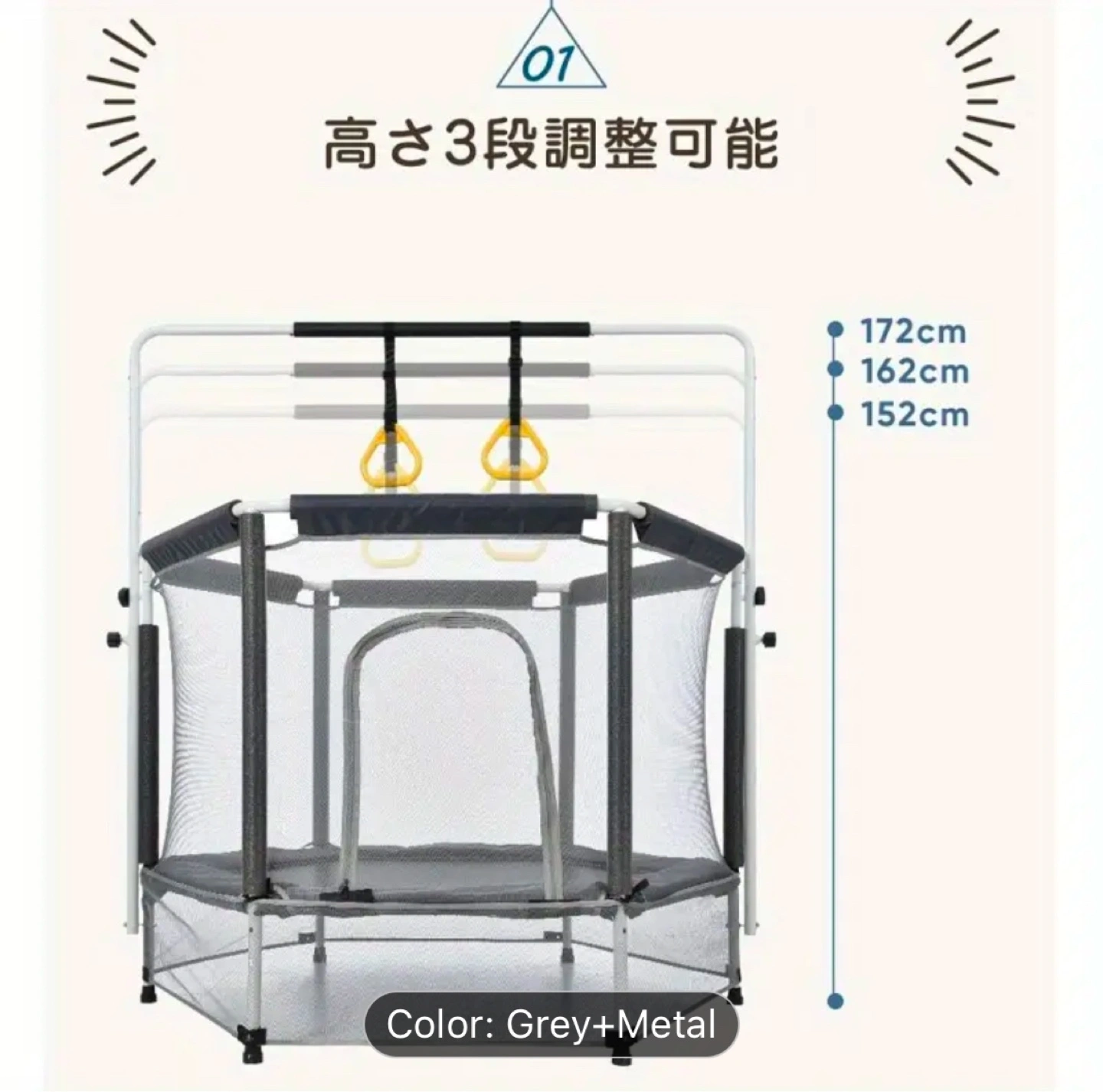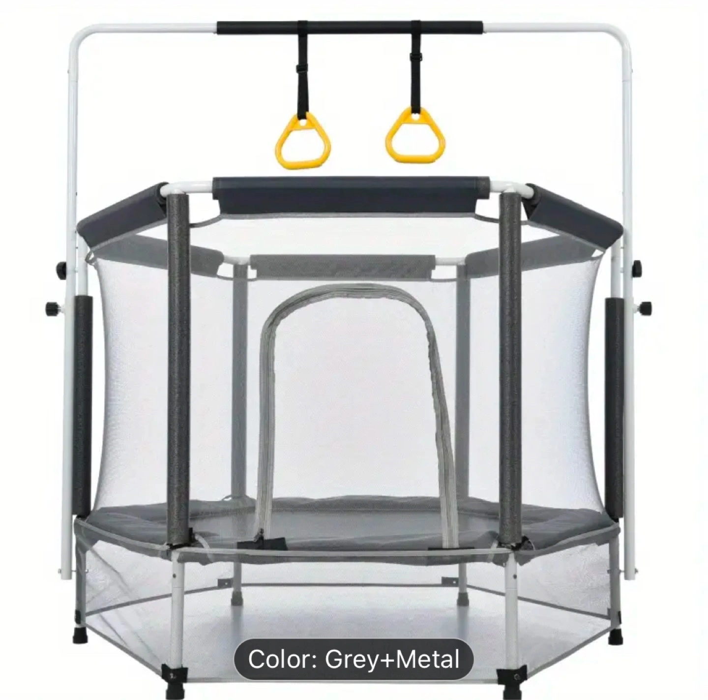 Indoor Trampoline with Adjustable Height and Safety Enclosure Net, 139.7cm Wide - Includes Iron Bar with Hanging Rings, Safety Pad Cover, Non-Slip, Quiet Spring System - Versatile Fitness & Play Equipment for Home Use - Ideal Gift for Birthdays or Holidays, Quantity: 1, Silver