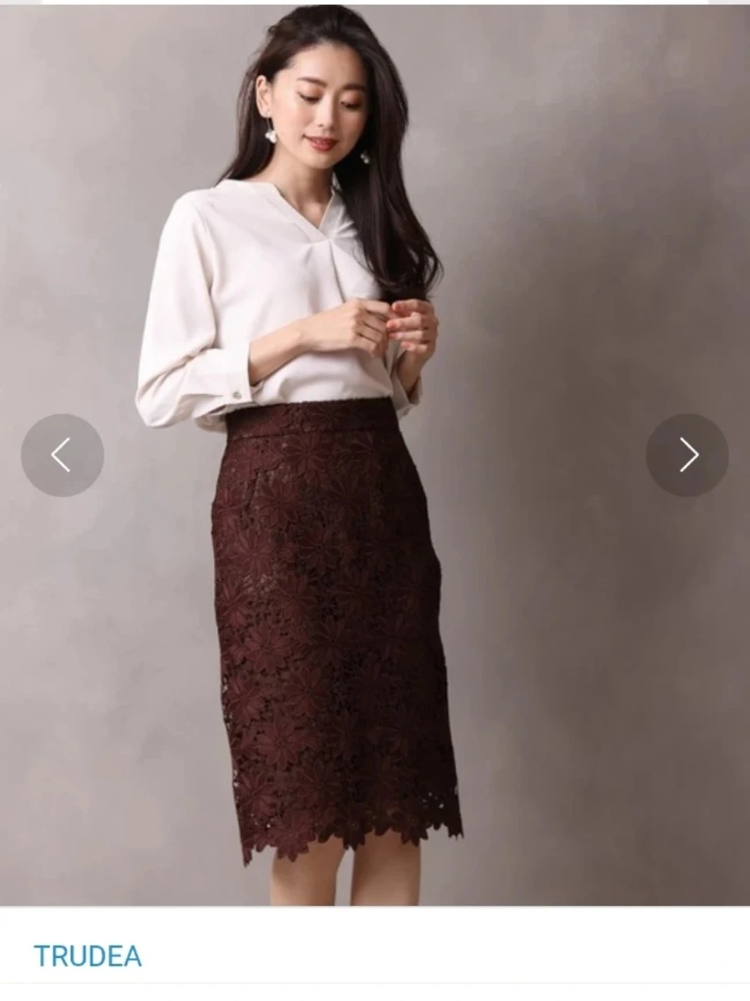 ≪大人気レースタイトスカート≫ Newカラー登場!オールシーズンお召し頂ける汎用性抜群のスカート。目を引くフラワーレースは、柔らかい女性らしさを演出してくれます。ダークカラーの展開で、落ち着きのある上品な印象に◎シンプルなニットやブラウスとの相性も良く、コーディネートのアクセントになります。毎日の通勤からお出かけスタイルまで、便利に着回せるスカートです。バックゴム+後スリットなので足さばきが良く、着脱も簡単な機能性抜群の1枚です。 【TRUDEA(トルディア)】by Astoria(アストリア)毎日着るものだからこそ素材や着心地にこだわりを!洗練されたデザインに程よいトレンド感をMIXした働く女性のワードロープを提案します。ベーシックなデザインなので、通勤やオフィスでのお仕事スタイルおすすめです。また、就職活動やセレモニーなどオケージョンシーンにも◎ビジネスなどのオンスタイルや、コーディネートするアイテム次第で、きちんと感を出しながら、カジュアルダウンしたスタイルやオフスタイルにも◎NEWブランド、ASTORIA Fleureのスーツも是非チェックしてみてください。 【Astoria Fleure (アストリアフルール)】シンボルカラーのバイオレットのように”美しく、気品と知性を兼ね備えた女性”をテーマに毎日の通勤スタイルを華やかに彩るフェミニンエレガンスブランドです。 洗濯:ドライクリーニング裏地有りです。ウエストゴム有りです。 サイズ...S
