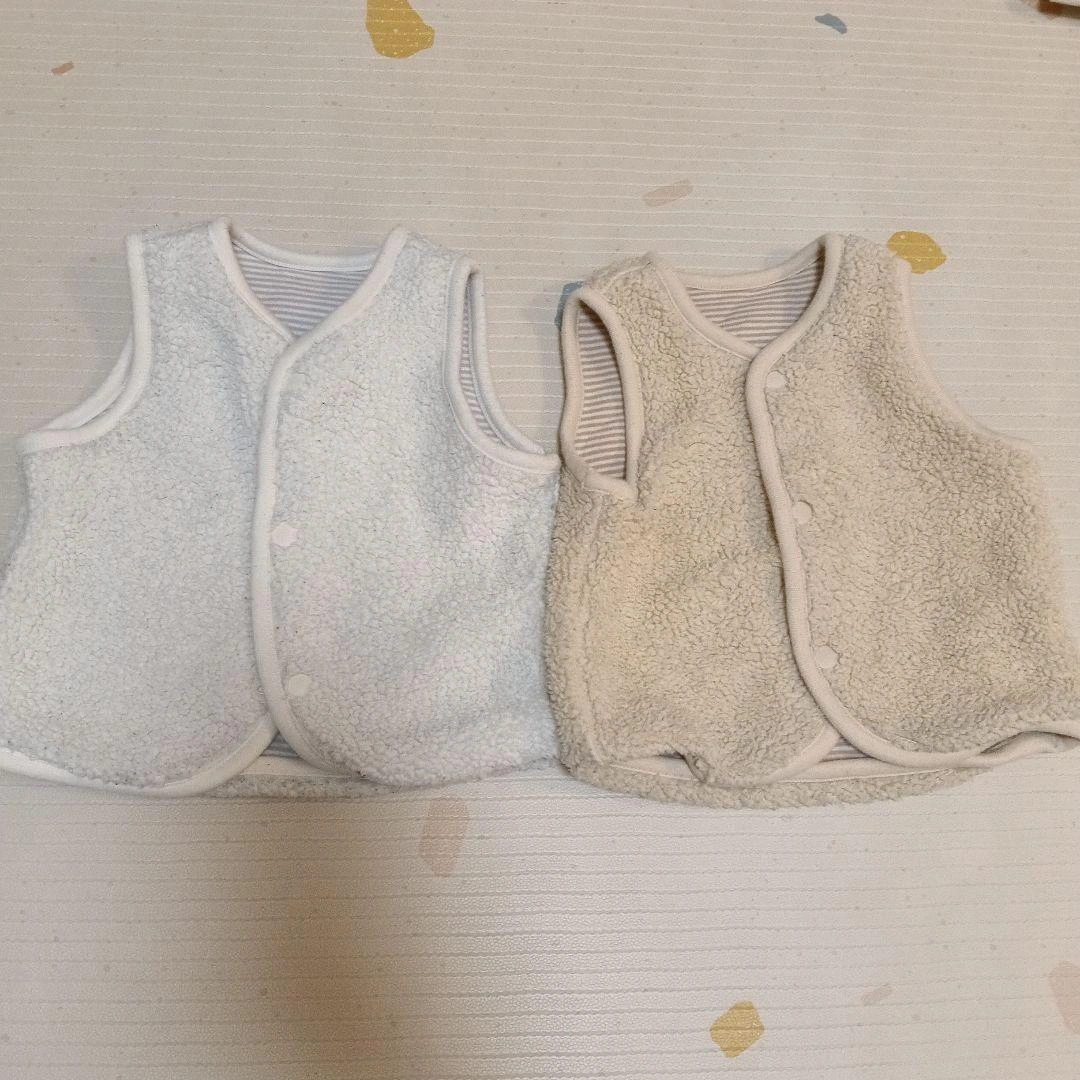 洗い替え、双子ちゃんにも。 毛羽立ち等あります。 柔らかいフリース素材のベビーベスト、70サイズ、ホワイトとベージュの2枚セットです。 - 色: ホワイト、ベージュ - サイズ: 70 - 素材: フリース - ボタン: スナップボタン ご覧いただきありがとうございます。