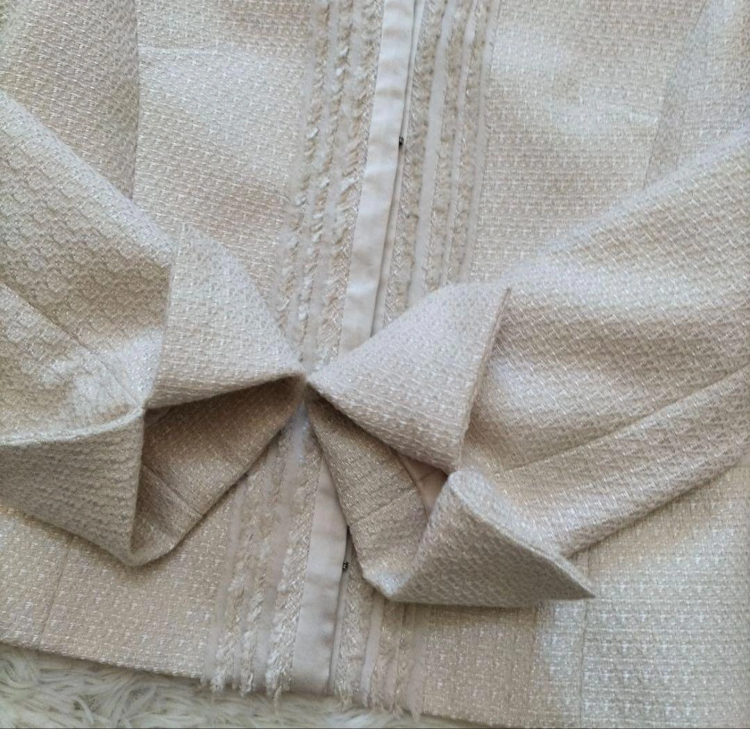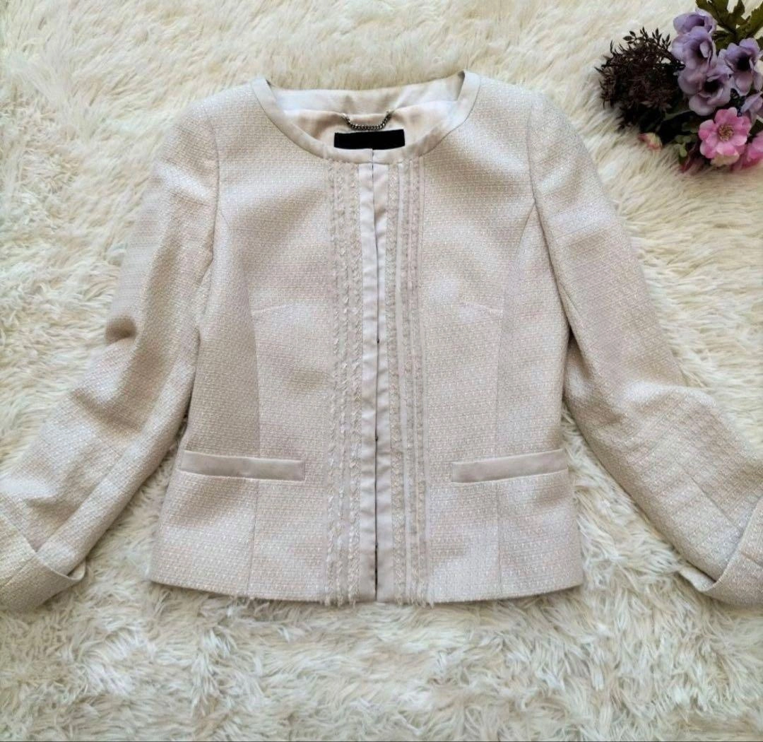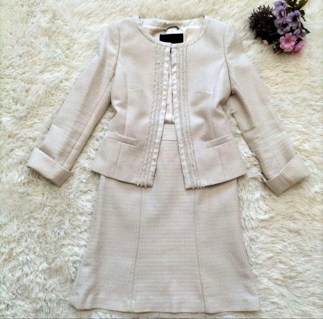 ご覧頂きありがとうございます♪ 【ブランド】 UNTITLED アンタイトル 【カラー】 ライトベージュ アイボリー ベージュ系(アイボリーにも見えます)でキラッと光る糸がアクセントなツイードになります。 ノーカラーとツイードで上品で素敵な女性に演出してくれます。 平置き 【サイズ】ジャケット 1(S相当) 肩幅 36cm 身幅 42cm 袖丈 57cm 着丈 49cm 【サイズ】スカート 1(S相当) ウエスト33 着丈53 多少の誤差はご了承くださいませ。 【素材】 綿 55% ポリエステル 45% キュプラ 5% こちらの商品は大手リサイクルショップで購入したused品です。 目立った汚れやダメージはありませんが、見落としがあるかもしれません。 あくまでも中古品とはなりますのでご理解の程お願いいたします。 ラメ ノーカラージャケット スカート スーツ セットアップ 入学式 セレモニー 季節感...春, 秋, 冬 卒業式や入学式、通勤などにオススメです!