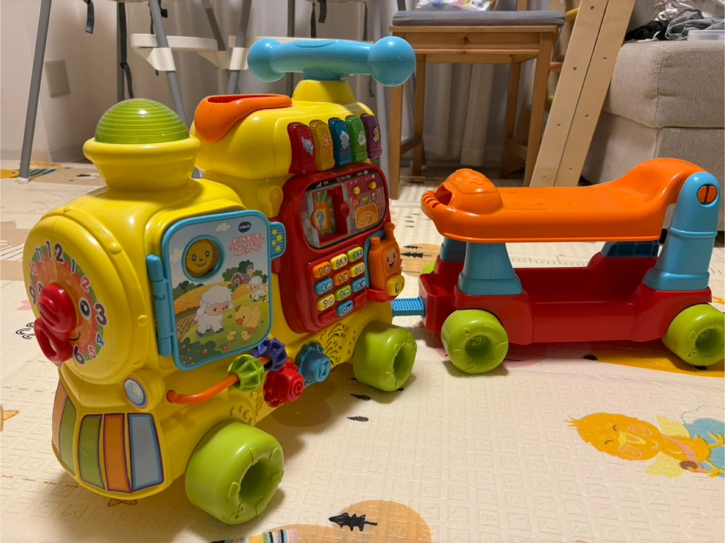 あたたかさVTechの汽車のおもちゃです。 ・ブランド:VTech ・色:黄色、赤、オレンジ、緑 ・使用感:少しあり 中古品であることご了承ください