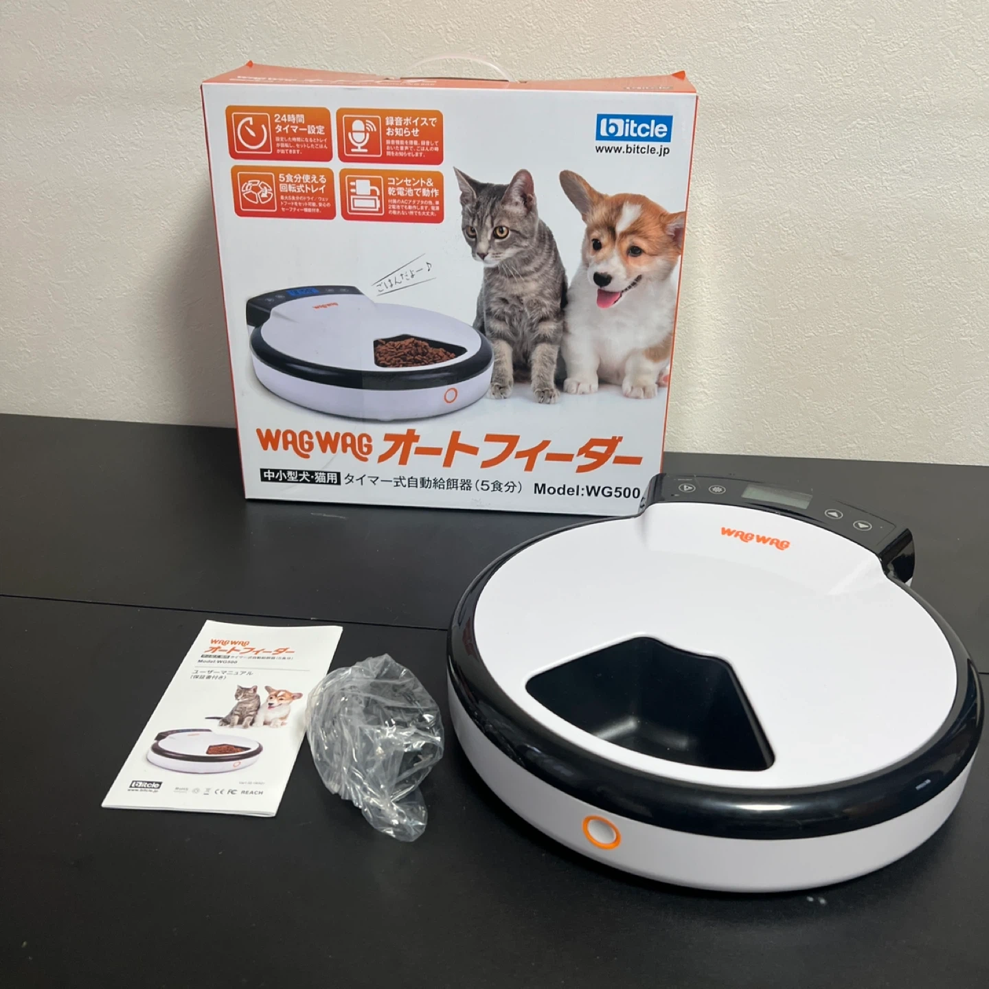 WAGWAGオートフィーダー WG500 中小型犬・猫用 タイマー式自動給餌器 ペット