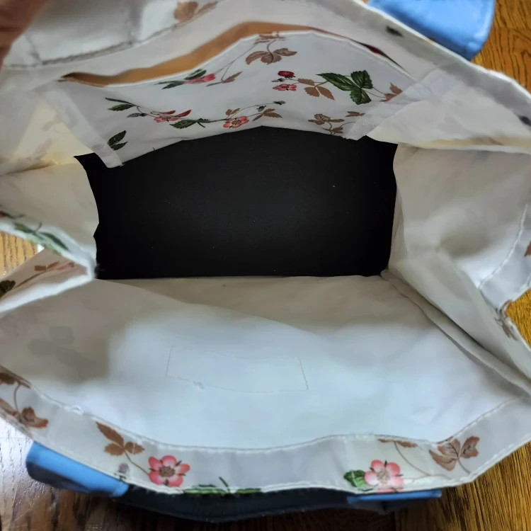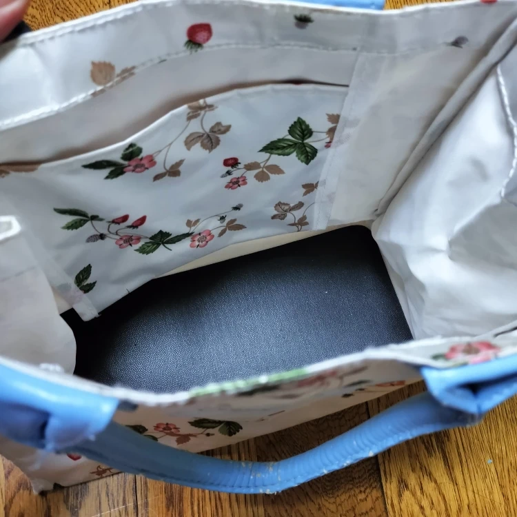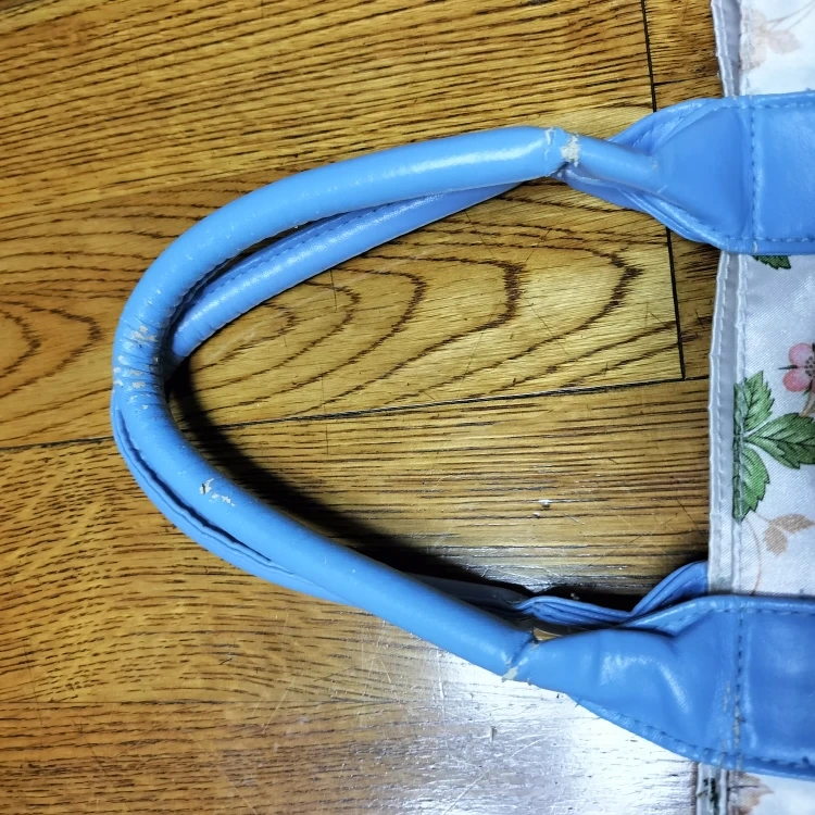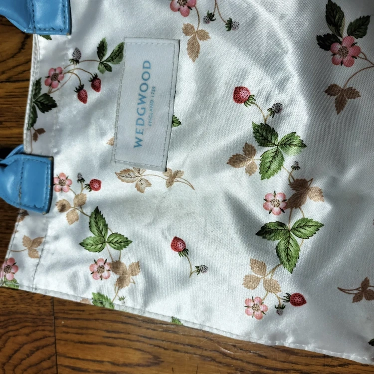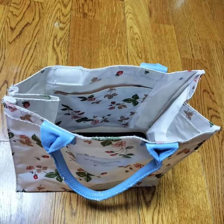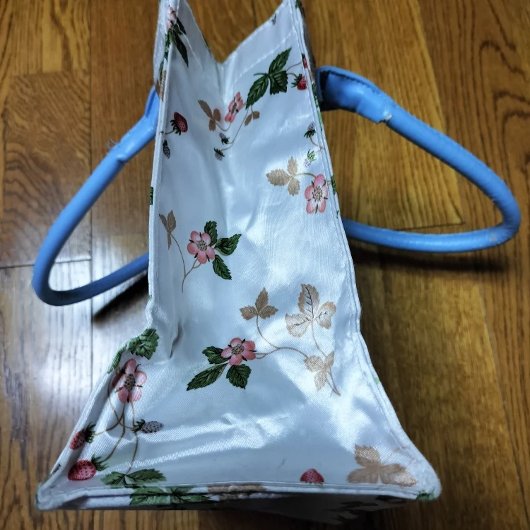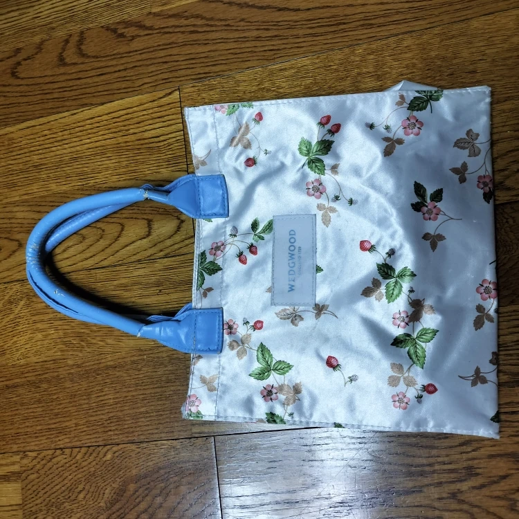 花柄デザインのホワイトトートバッグ、ブルーハンドル付き。 - ブランド: WEDGWOOD - 色: ホワイト/ブルー - デザイン: 花柄 - ハンドル: 合成皮革 - 素材: ナイロン GLOW グロー 2015年 6月号付録 ウェッジウッド ワイルドストロベリー柄 特製バッグ サイズ:縦約23×横約25×マチ約11cm 持ち手に剥がれあり、全体的に擦れや黄ばみやしみ有り。 長期自宅保管の為、気になる方はご遠慮下さい。 ご覧いただきありがとうございます。