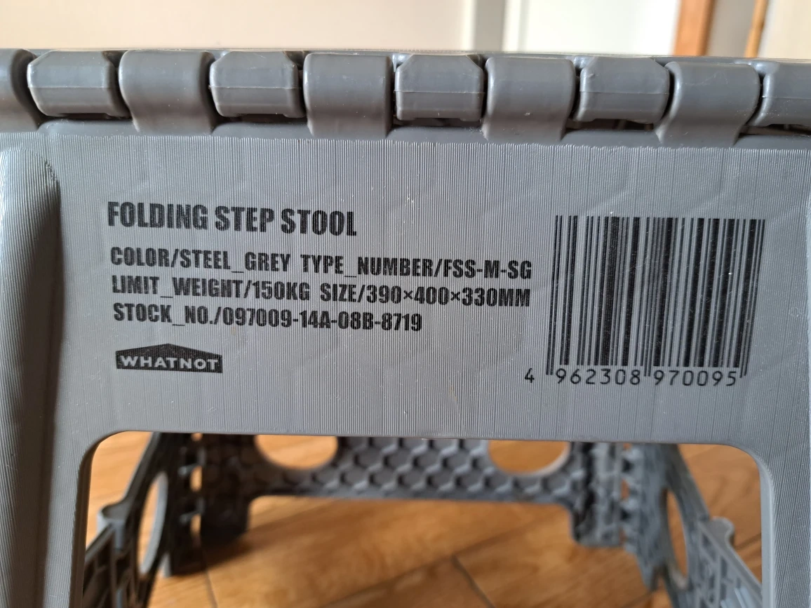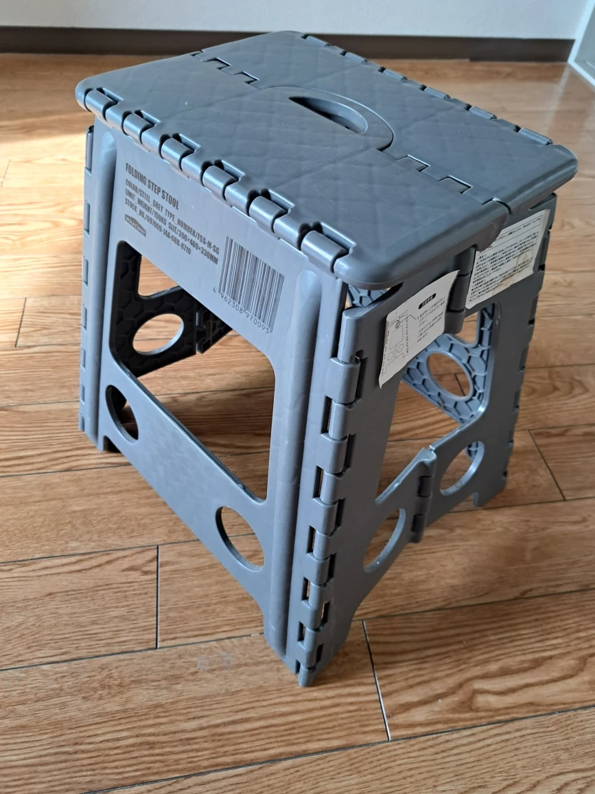 帰国しますので良かったらお取りください。 https://amzn.asia/d/bKTLiAw Color: Gray Size (W x D x H): Approximate: When in use: 15.4 x 13.0 x 15.7 in (39 x 33 x 40 cm); When folded: 15.4 x 1.8 x 21.3 in (39 x 4.5 x 54 cm) Material: Main: Polypropylene, calcium carbonate; Anti-slip grip: Rubber (TRP) Weight: Approx. 3.3 lbs (1.5 kg); Load capacity: Approx. 330.7 lbs (150 kg) Please note that the load capacity has been tested but it is not guaranteed