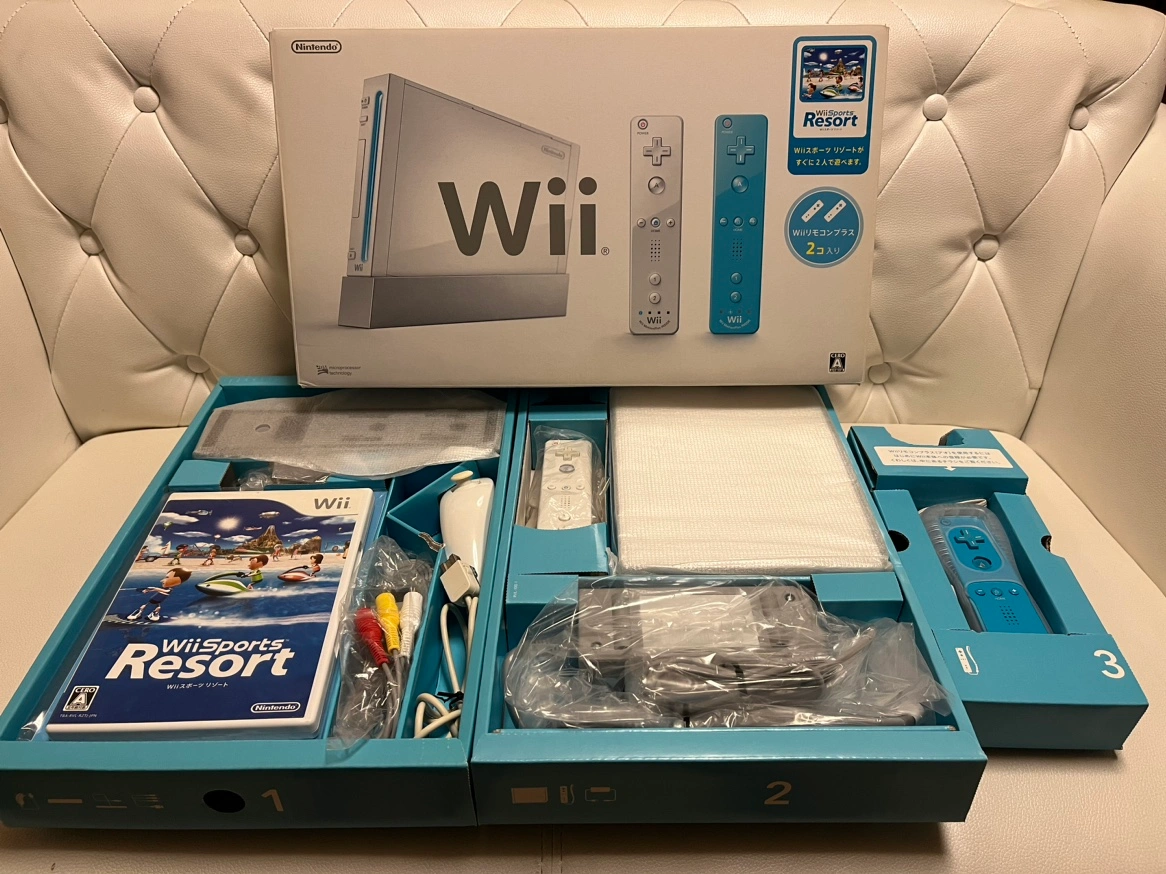 「WII 本体セット 白/Wiiスポーツリゾート」 定価: - Wii本体、リモコン(Wiiモーションプラス)×2、シリコンカバー×1、ヌンチャク×1、ストラップ×2、ソフト(Wiiスポーツリゾート)は使用済みです。ACアダプタ、ケーブル、センサーバー、センサーバースタンド、本体スタンド、スタンド補助プレートは未使用です。画像の物が全てです。あくまでも中古品となりますので、神経質な方はご遠慮下さい。本体、ディスク共に動作確認済み。初期化済み。 プロフィールのご確認よろしくお願いいたします😊