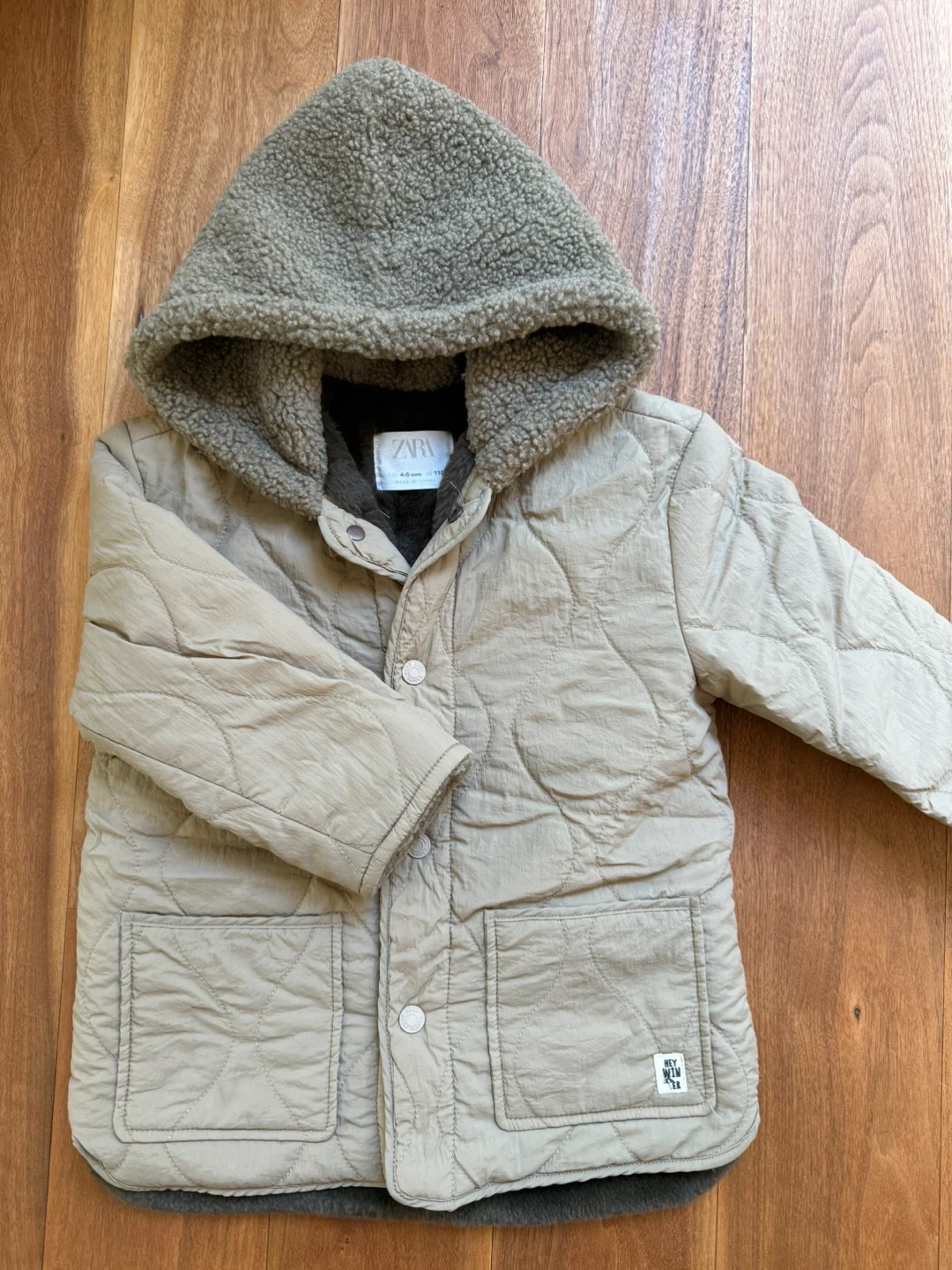 ザラのキッズジャケットです。 中がフェイクファーのようになっていて、とても暖かいです。 ・ブランド:ザラ ・サイズ:4-5 YEARS、110cm ・素材:ポリエステル ・色:カーキベージュ(暗めのベージュ?) ・状態:使用感少なめ、目立つキズなし 予備で買ったもので、数回程度着用しましたが、とても綺麗です。洗濯機で洗いましたが問題なかったです。 中古品であることだけご了承ください。