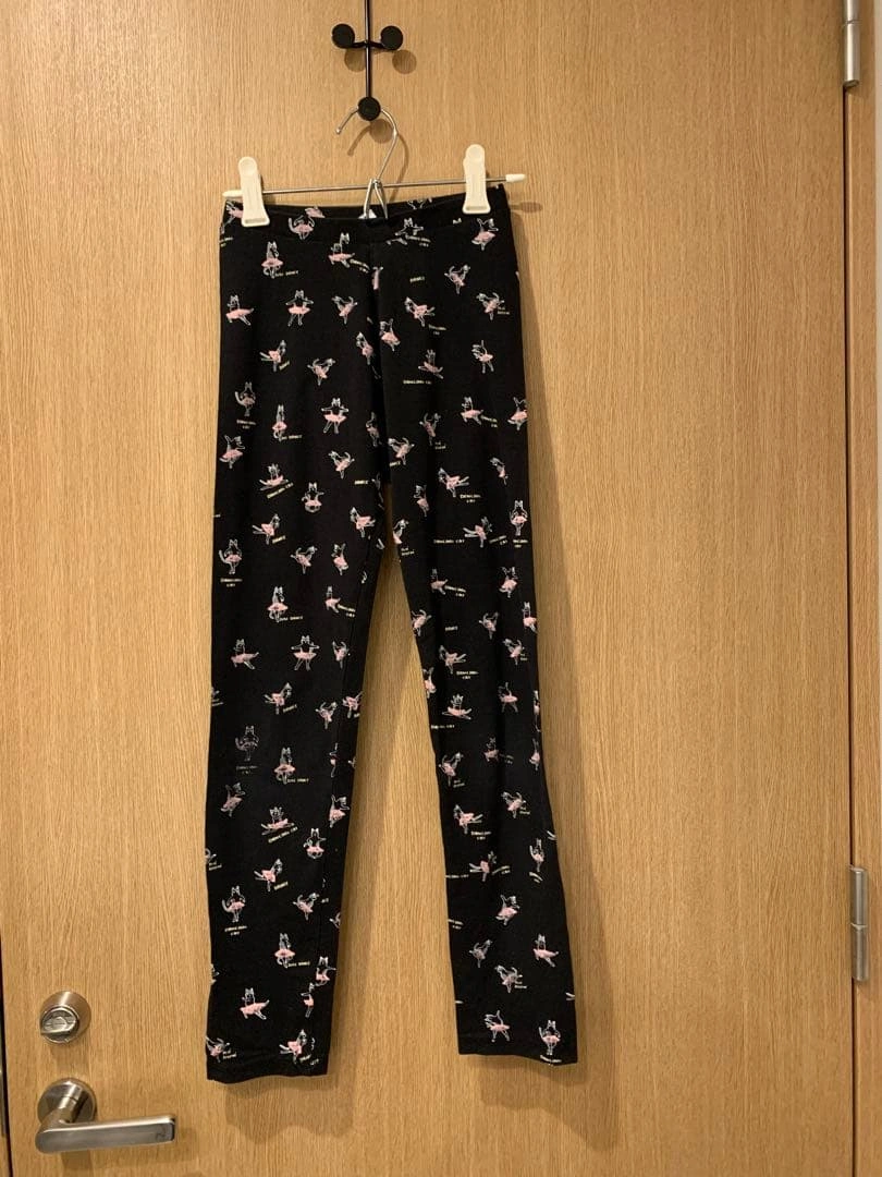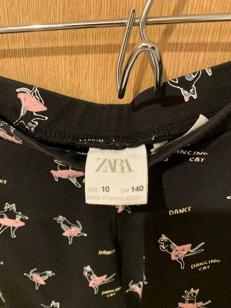 ダンスする猫のプリントが特徴のブラックレギンスです。 - ブランド: ZARA - サイズ: 10 (140cm) - デザイン: ダンスする猫のプリント - カラー: ブラック ご覧いただきありがとうございます。
