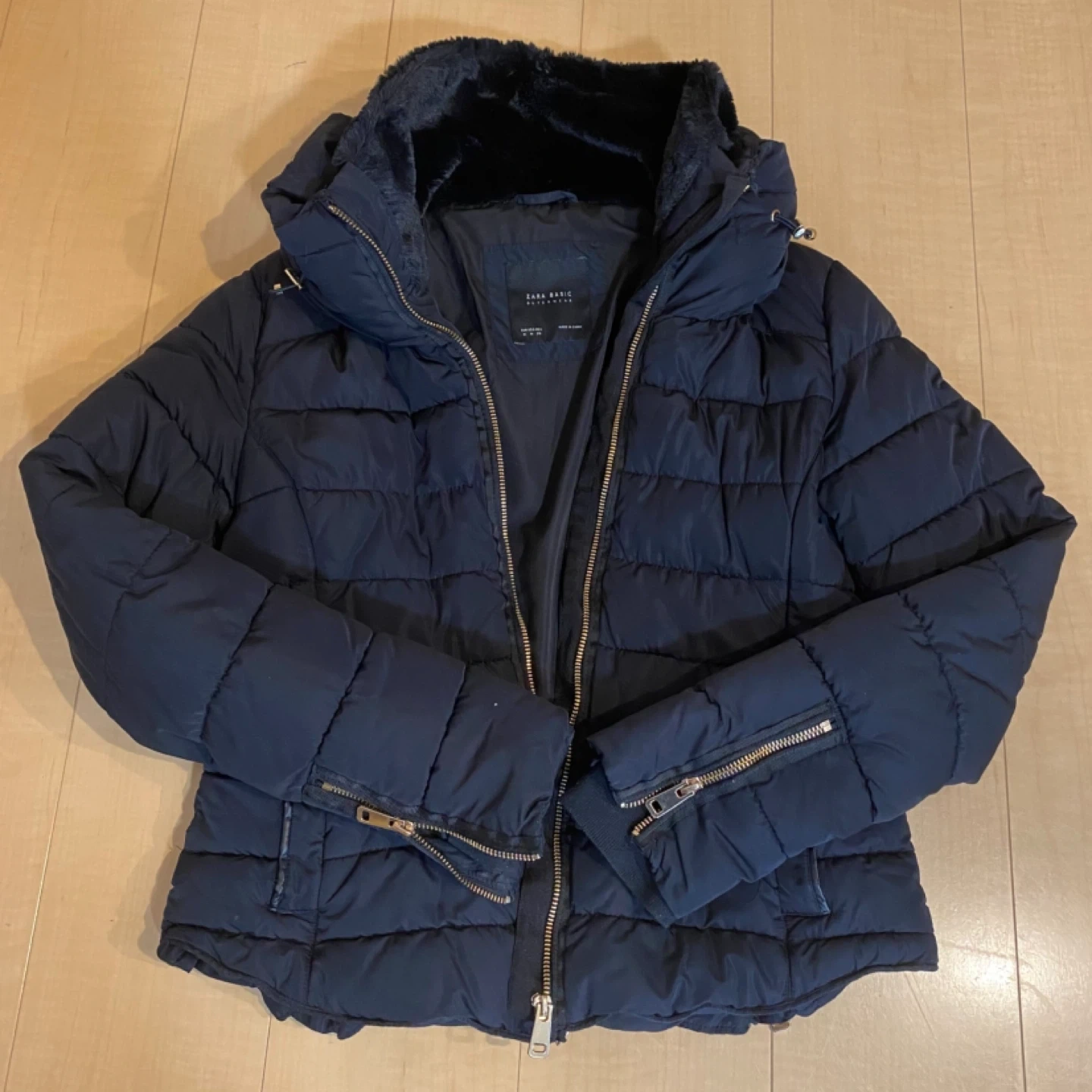 ザラベーシックのアウターです。 ・ブランド:ザラベーシック ・サイズ:M(EUR USA MEX M 28) ・カラー:ネイビー ・使用感あり ・ポケットに傷あり ・収納フードあり 中古品であることご了承ください。 ⚫︎篠崎駅前でのお渡しも可です。