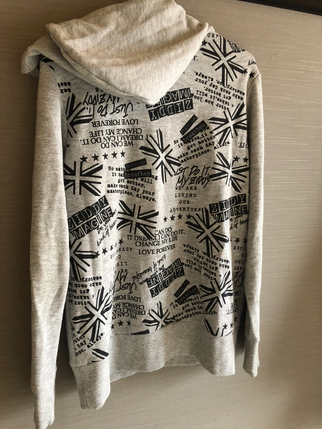 ジディーのパーカーです ・カラー:グレー ・素材:ポリエステル65%、綿35% ZIDDYグレーパーカーです サイズかよくわかりませんが 子供用 150じゃないかと思います 去年150を着ていた子が今年サイズアウトなので💦 穴汚れ匂い等無いと思いますが 見落としありましたらすみません バックプリントがカワイイです 裏起毛では無いです フードも軽く着やすいと思います✨ 中古感はあるのでご理解無い方は購入をお控えください❤︎ ペット喫煙者🦜ナシ