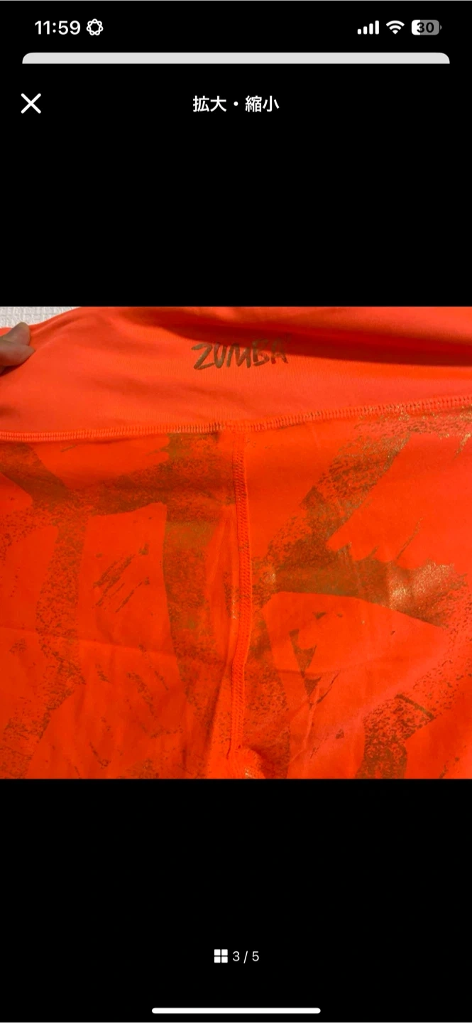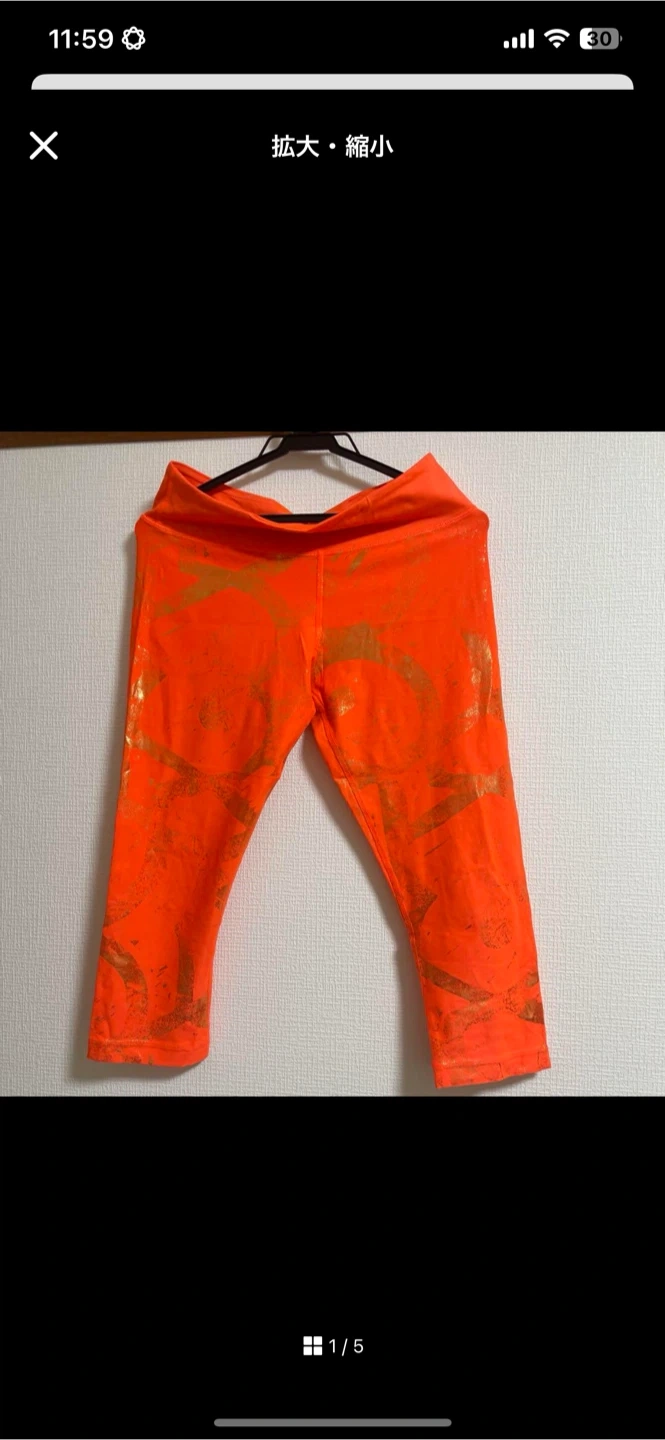 鮮やかなオレンジにゴールドプリントのZumbaレギンス。 - ブランド: Zumba - カラー: オレンジ - デザイン: ゴールドのプリント - 素材: コロンビア製 - 特徴: ウエスト部分が広めのデザイン ご覧いただきありがとうございます