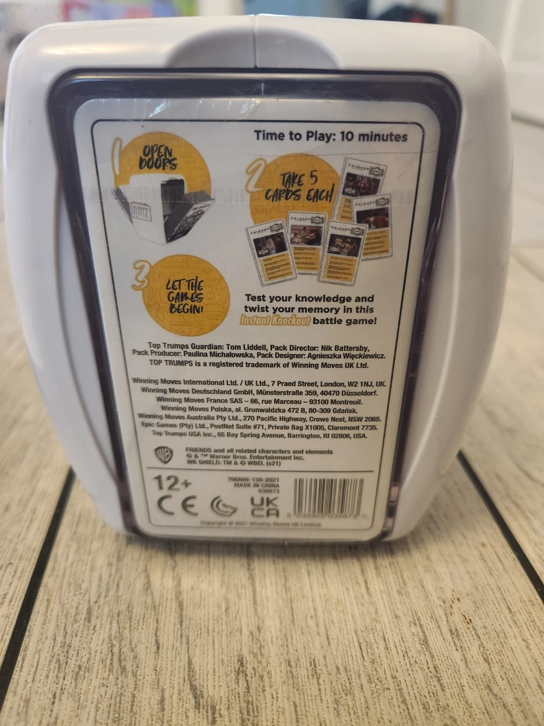 9 reviewsSelling a Friends TV series trivia quiz by Top Trumps! It tests your knowledge and twist your memory in this instant/knockout battle game. Time to play: 10 minutes. Suitable for ages 12+