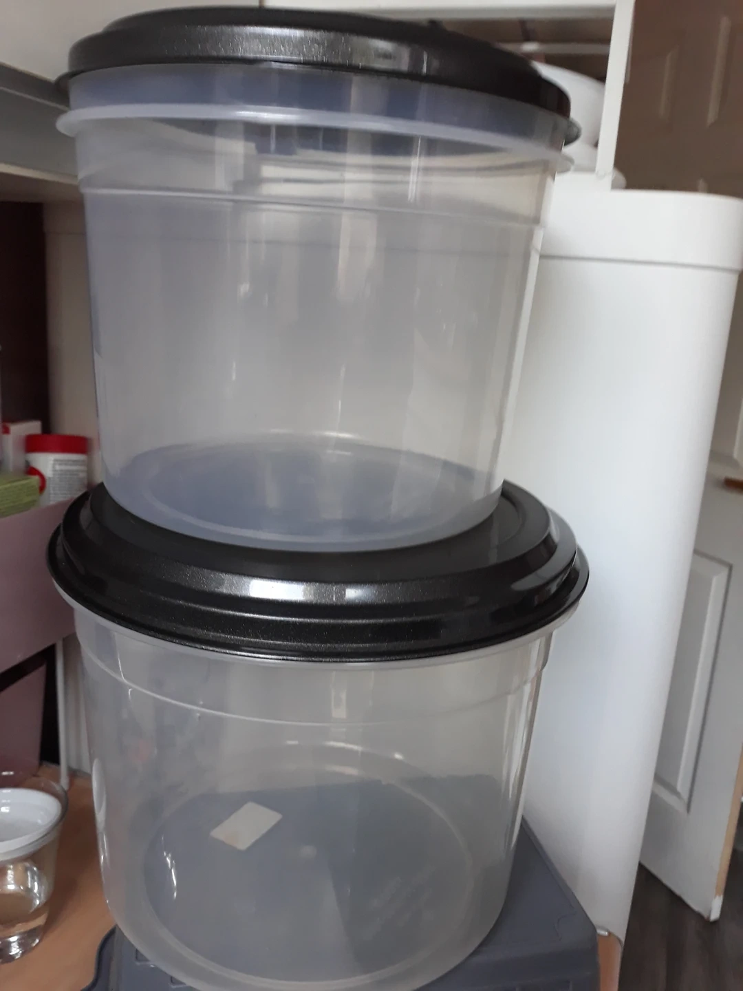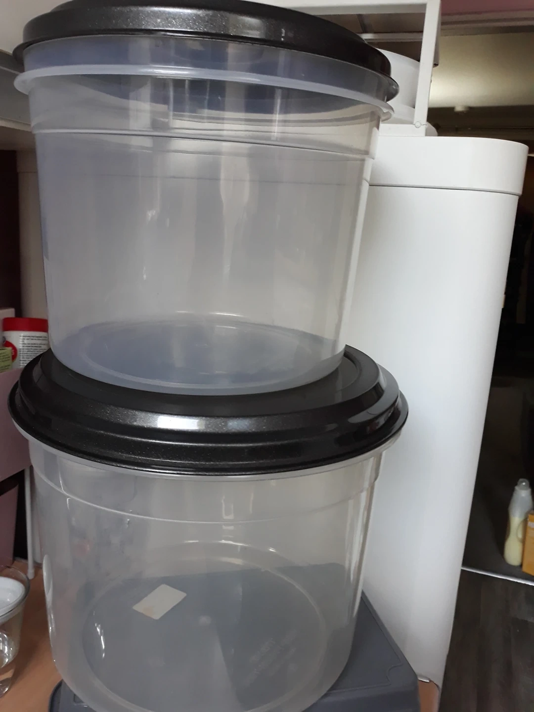 45 reviewsUsed good condition clear either black lids excellent storage boxes very sturdy