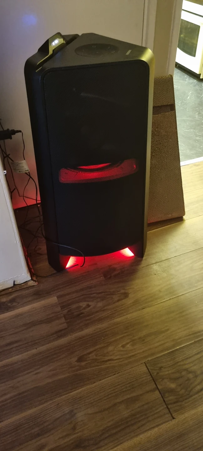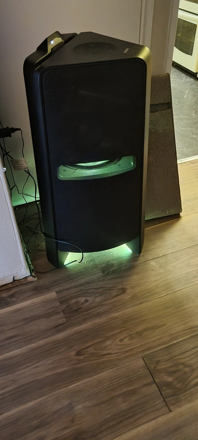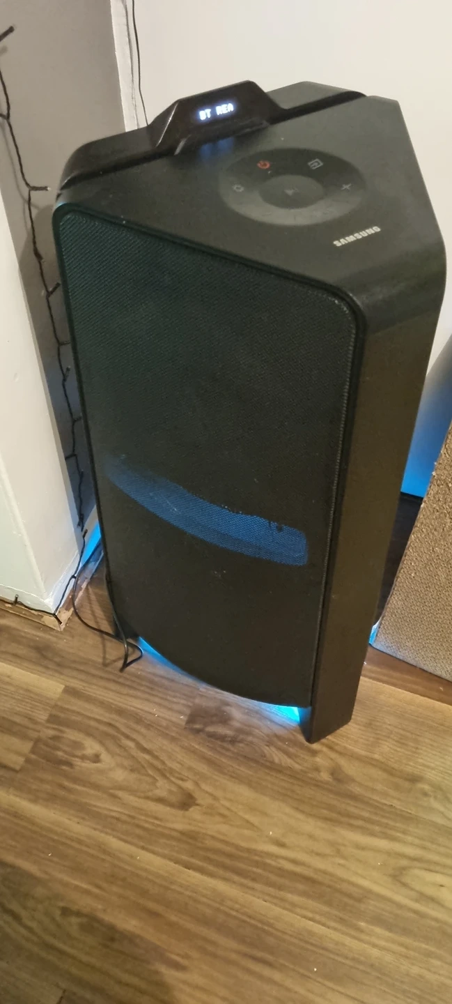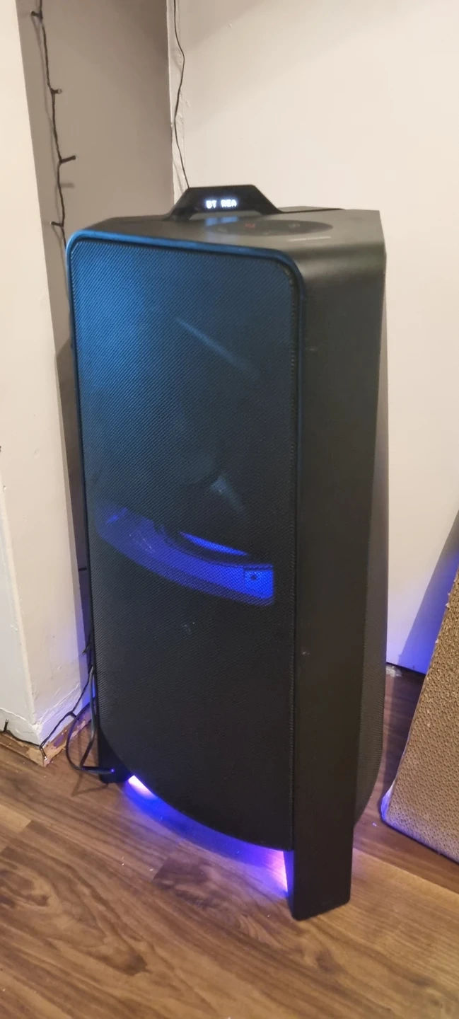 1 review2 x samsung party speakers amazing sound 1500 watts in each speaker powerful and 5 preset light effects bluetooth wireless connectivity to pair both speakers amazing for karaoke to buy they are 550.each. your getting 2 for 550.00.