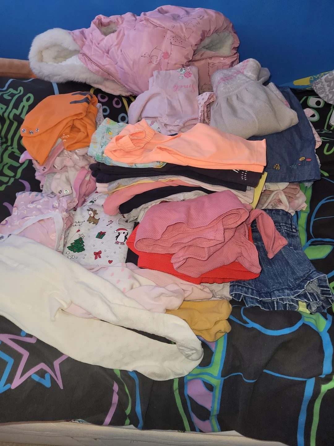 2 reviewsBundle consists of 1 jacket 1 body warmer 16 vests 5 pairs of tights 3 jumpers 2 shorts 1 skirt 14 tshirts 15 pairs of leggings 9 outfits 8 dresses 1 sleep suit 1 pj set 3 dressing gowns Collection only from Weston all in good used condition