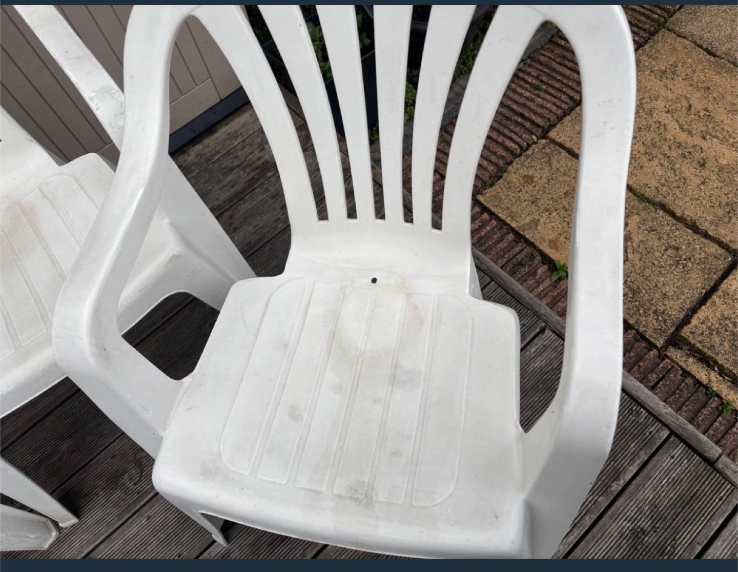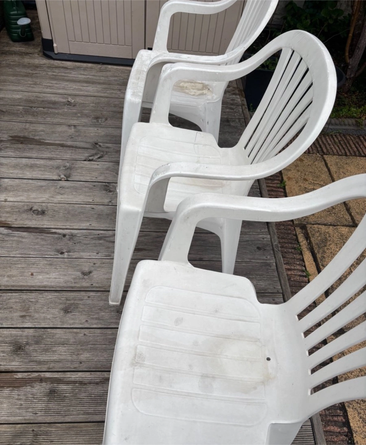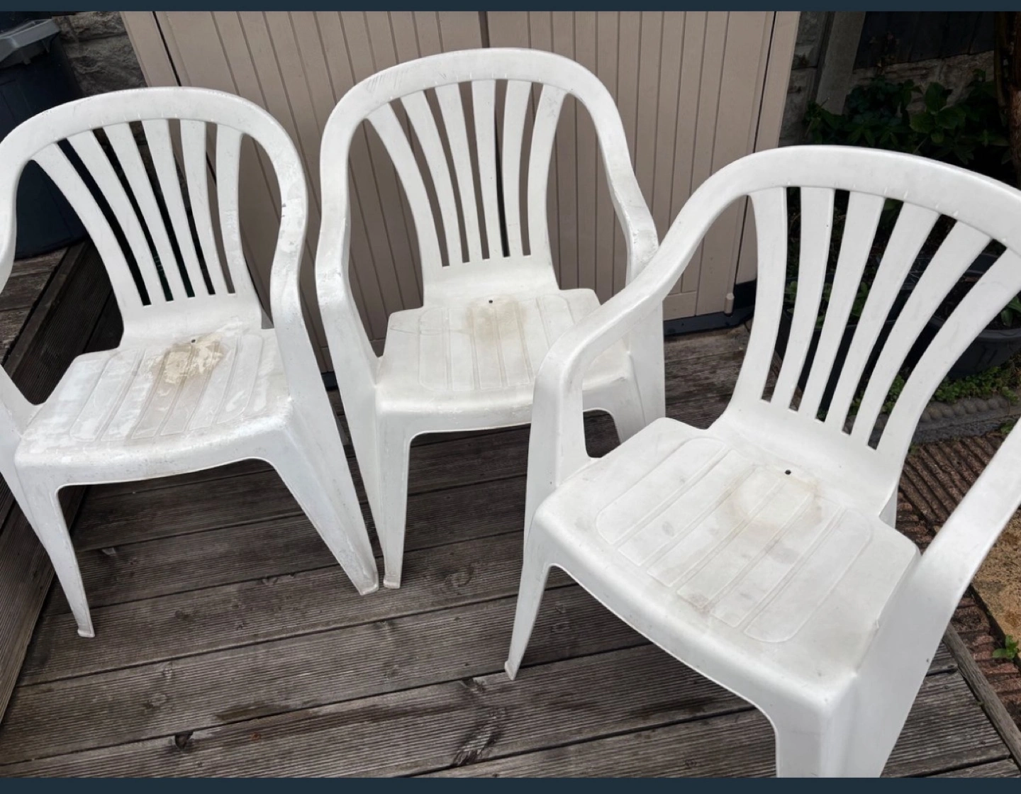 7 reviews3 plastic chairs White Water marks need a good clean Sold as seen Buyer to collect Thank you for viewing