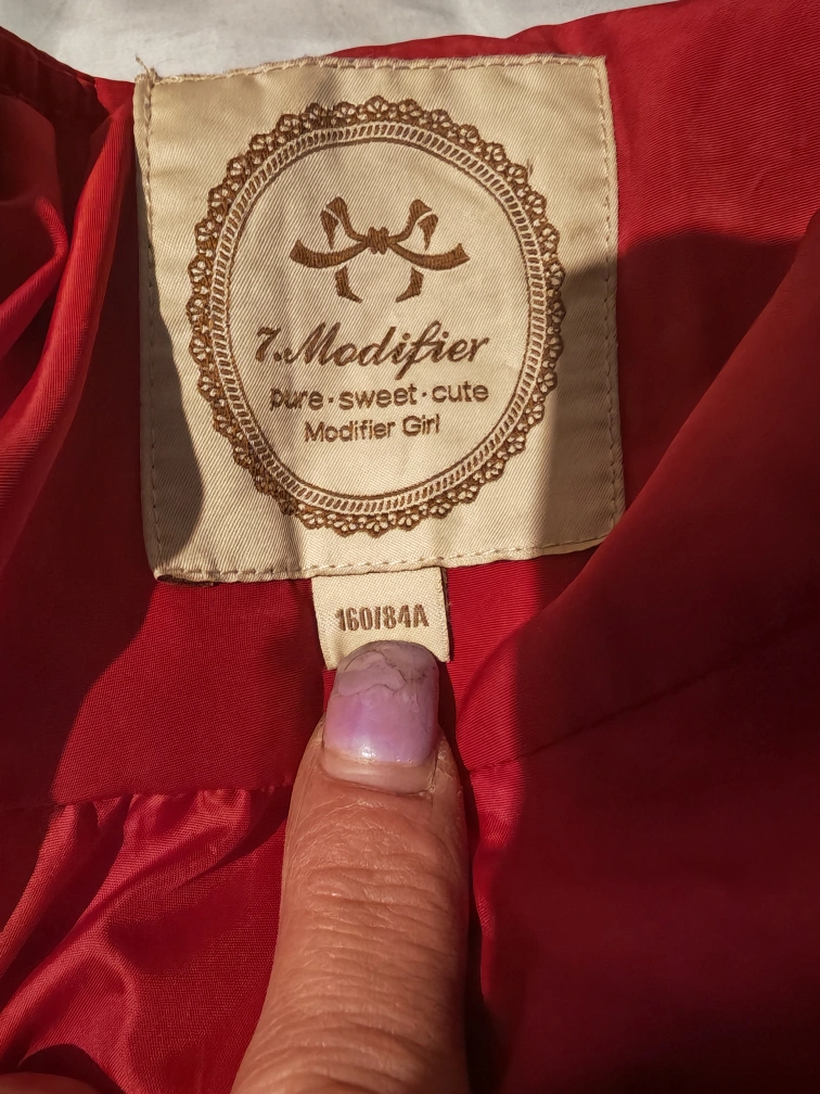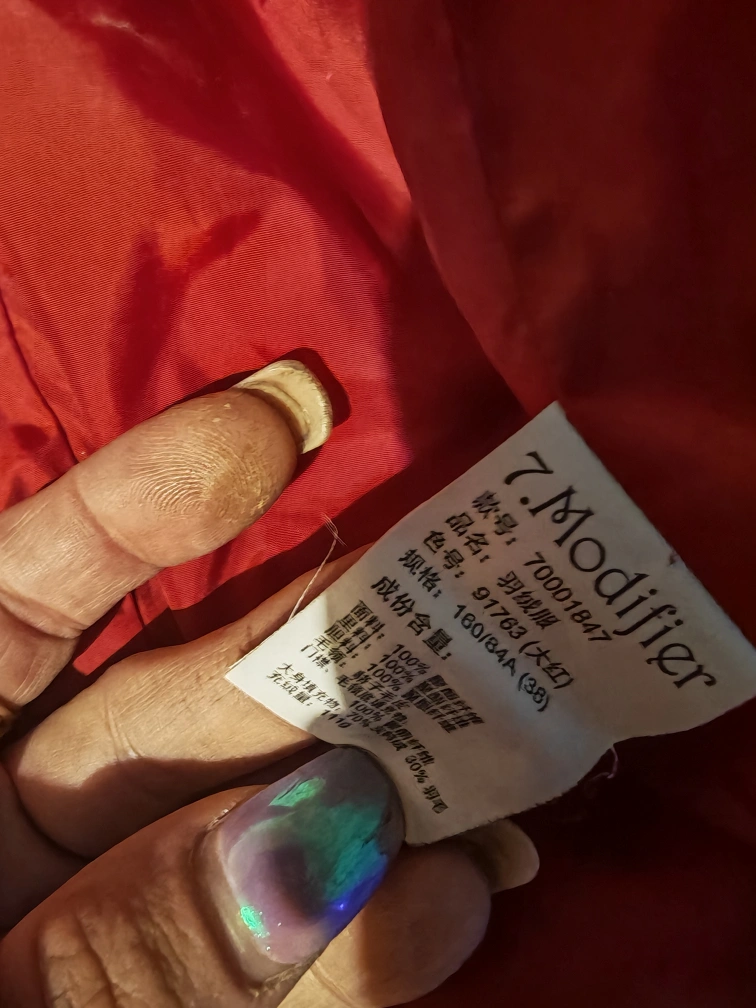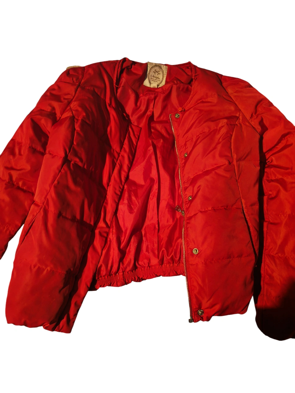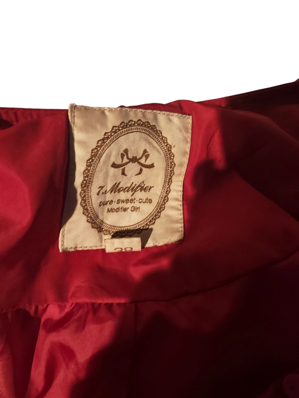 2 reviewsA lovely red padded jacket from 7.Modifier. It's a size 38 (160/84A). The material is 100% polyester, with a filling of 90% down and 10% feathers. A great addition to any wardrobe!
