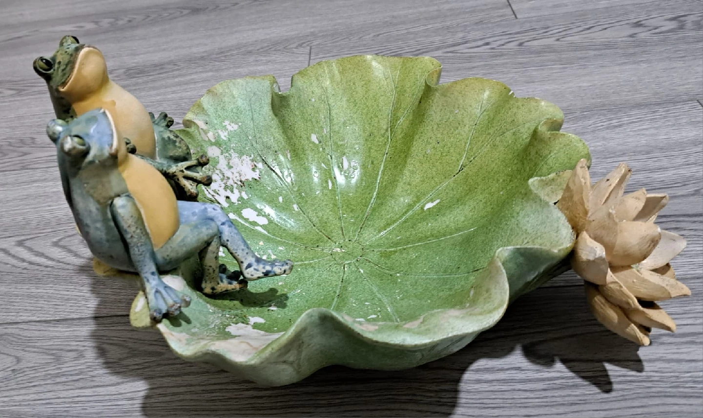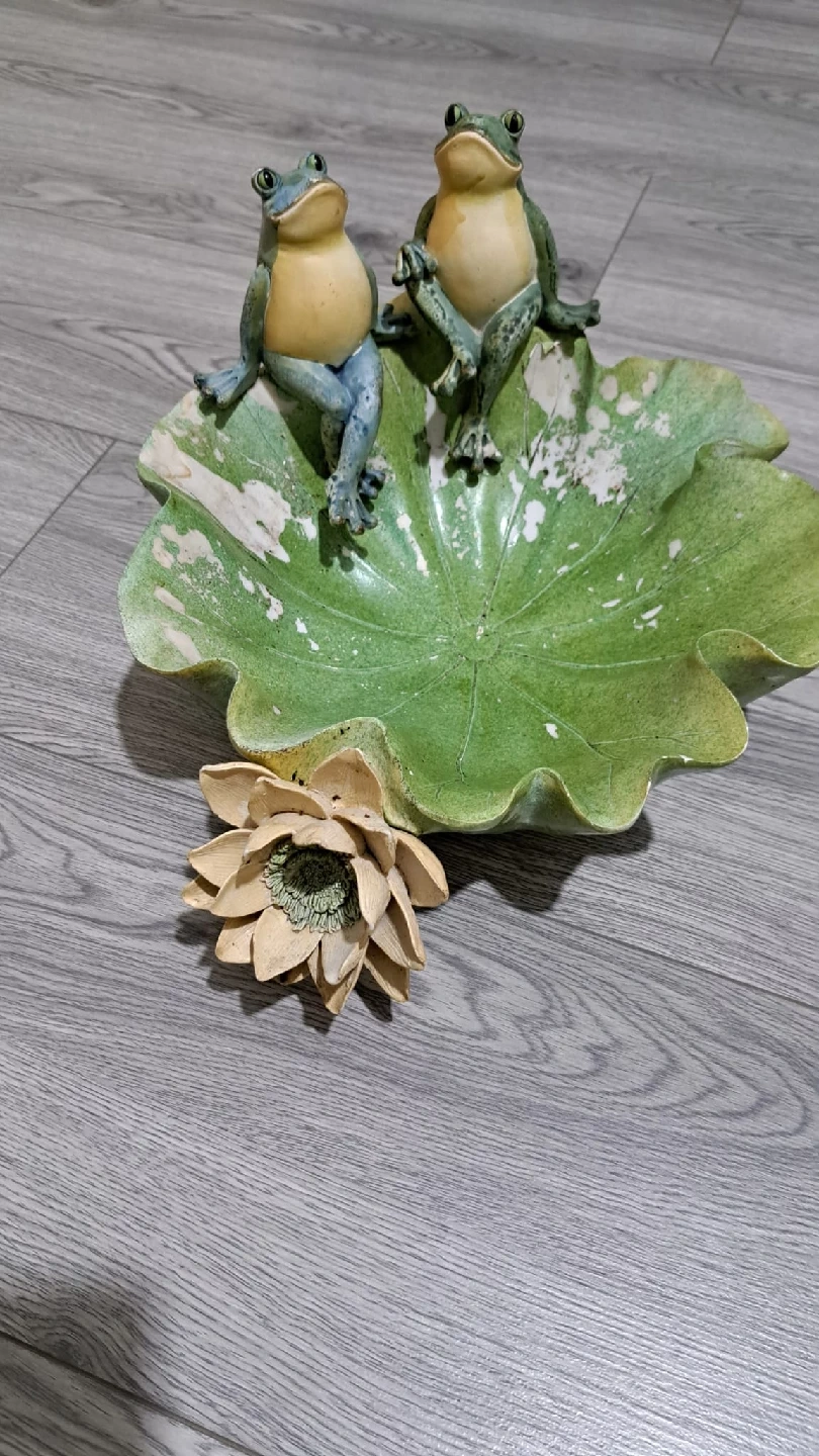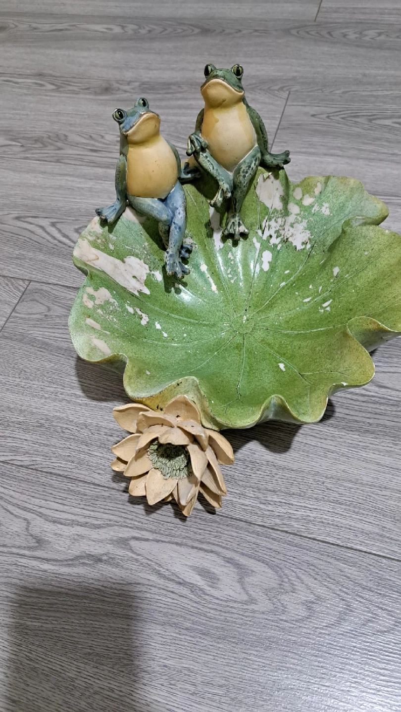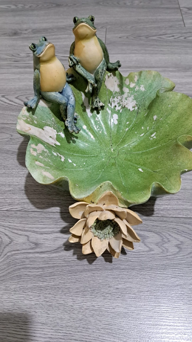 0 reviewsDecorative piece Two Frogs On A Lily Pad" by Lowell Davis, This garden decoration piece has a little paint damage, as seen in the pictures. But otherwise, it's completely fine, no cracks.